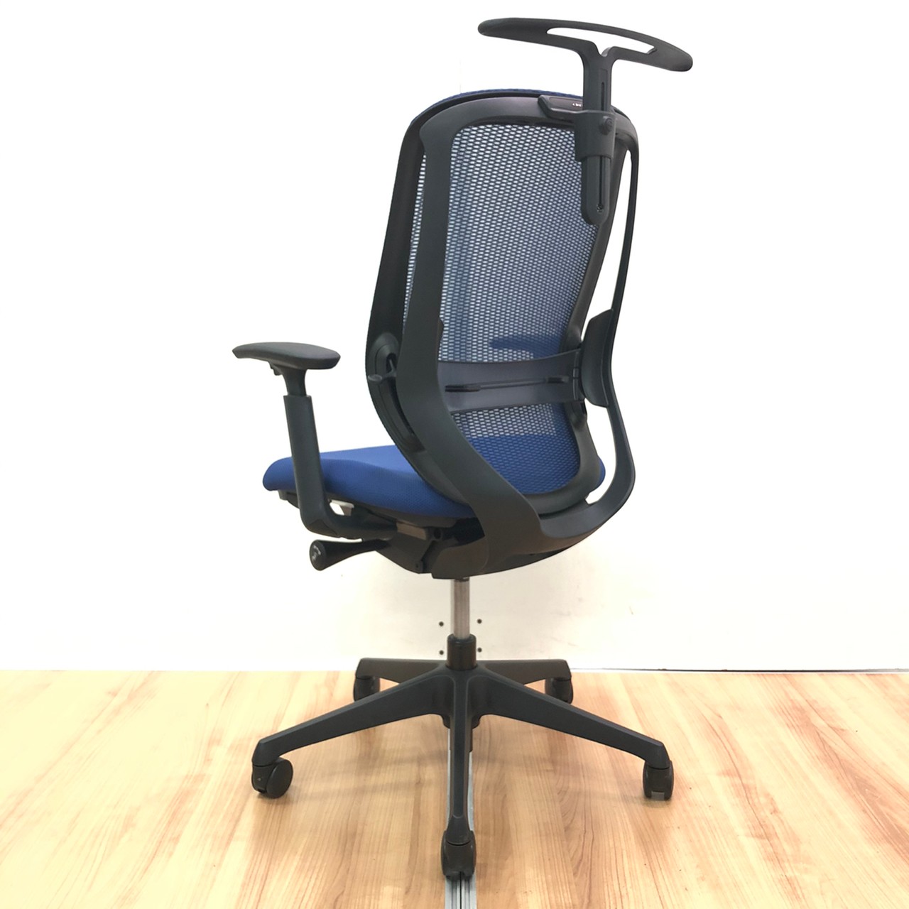 【三次元曲面が身体にフィット!前傾チルト機能付き大人気メッシュチェア!】■オカムラ(okamura)製 シルフィーチェア(Sylphy) 肘付きハイバック ■背面メッシュ ■可動肘 ■ブルー×ブラックシェル ■コートハンガー付き