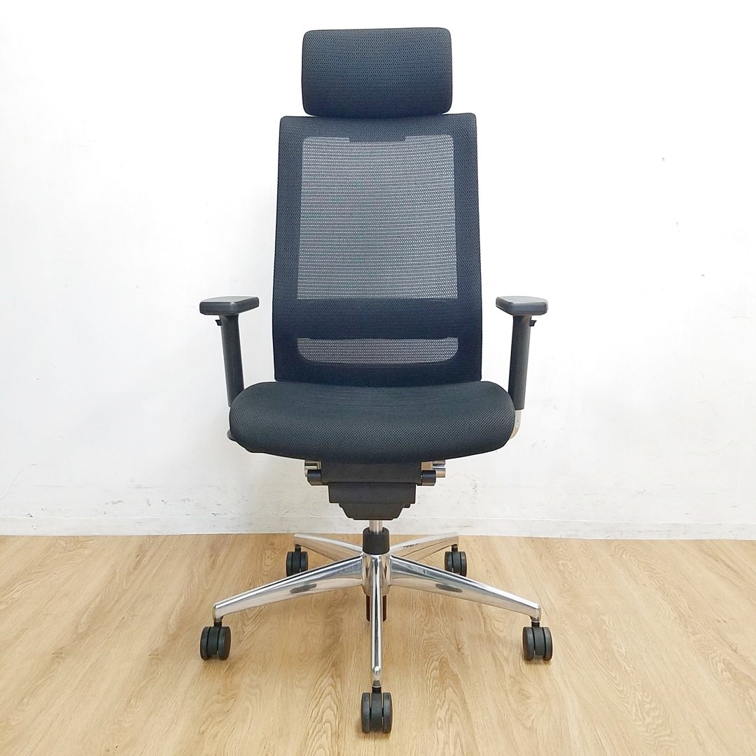 【スマートなデザインの上質チェア!】■コクヨ製 エアフォート 肘付ハイバックチェア ■ブラック ランバーサポート付き 可動肘
