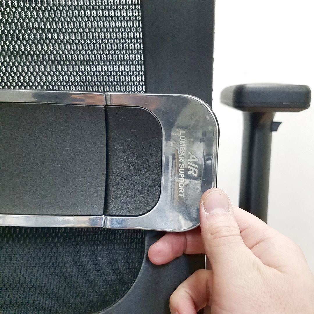 - 自由に変形し、力を分散させながら反発する空気の特性によって腰をサポート。ランバー部の前後幅は0~40mm、上下幅は100mmの調整が可能で、個人個人の異なる背骨形状にフィットします。
