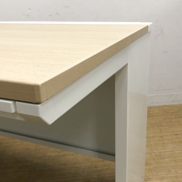 W1600の大きめ平デスク オカムラ アドバンス ネオウッドライト×ホワイト 薄引き出し付き- 名古屋千種店