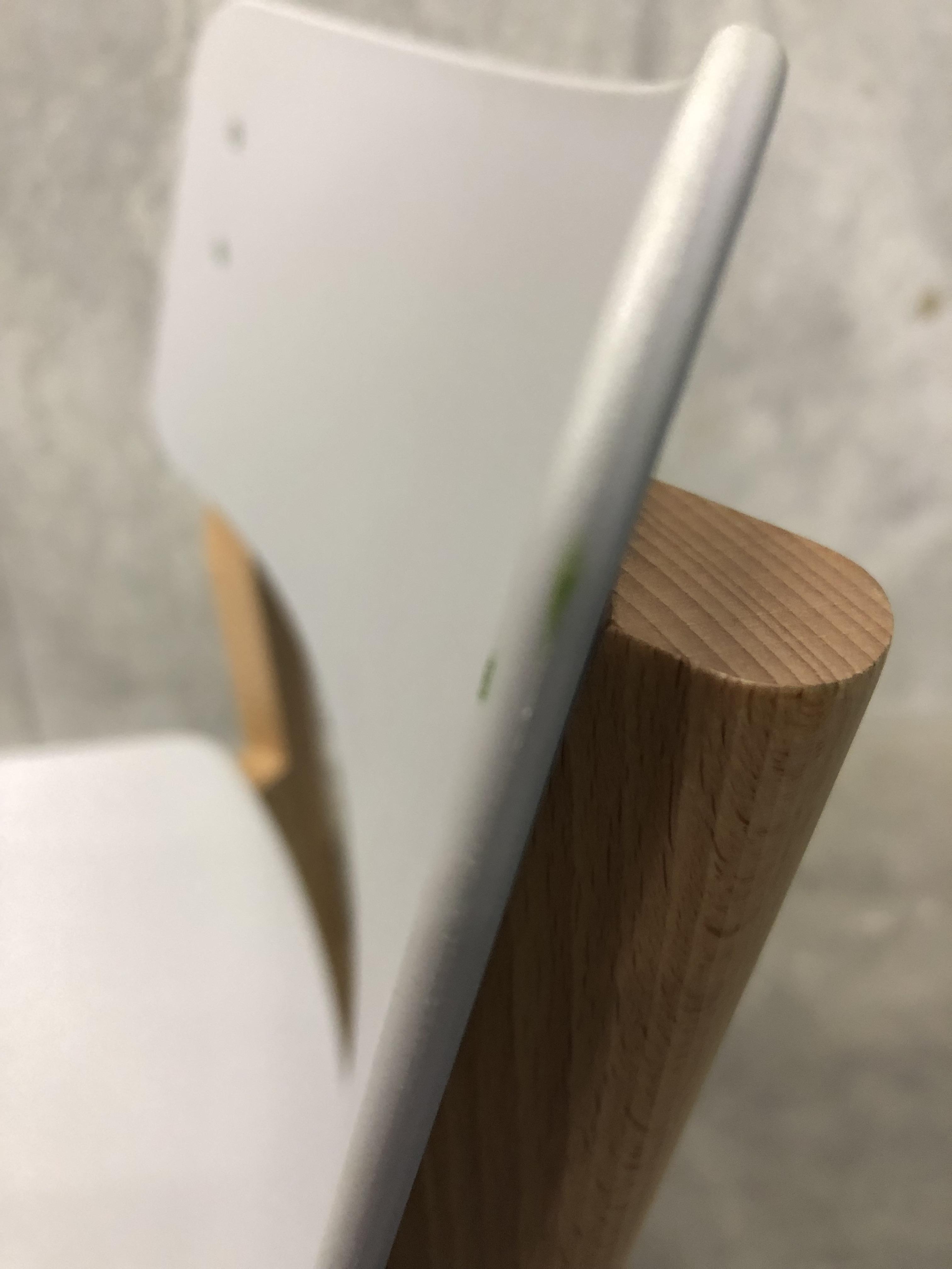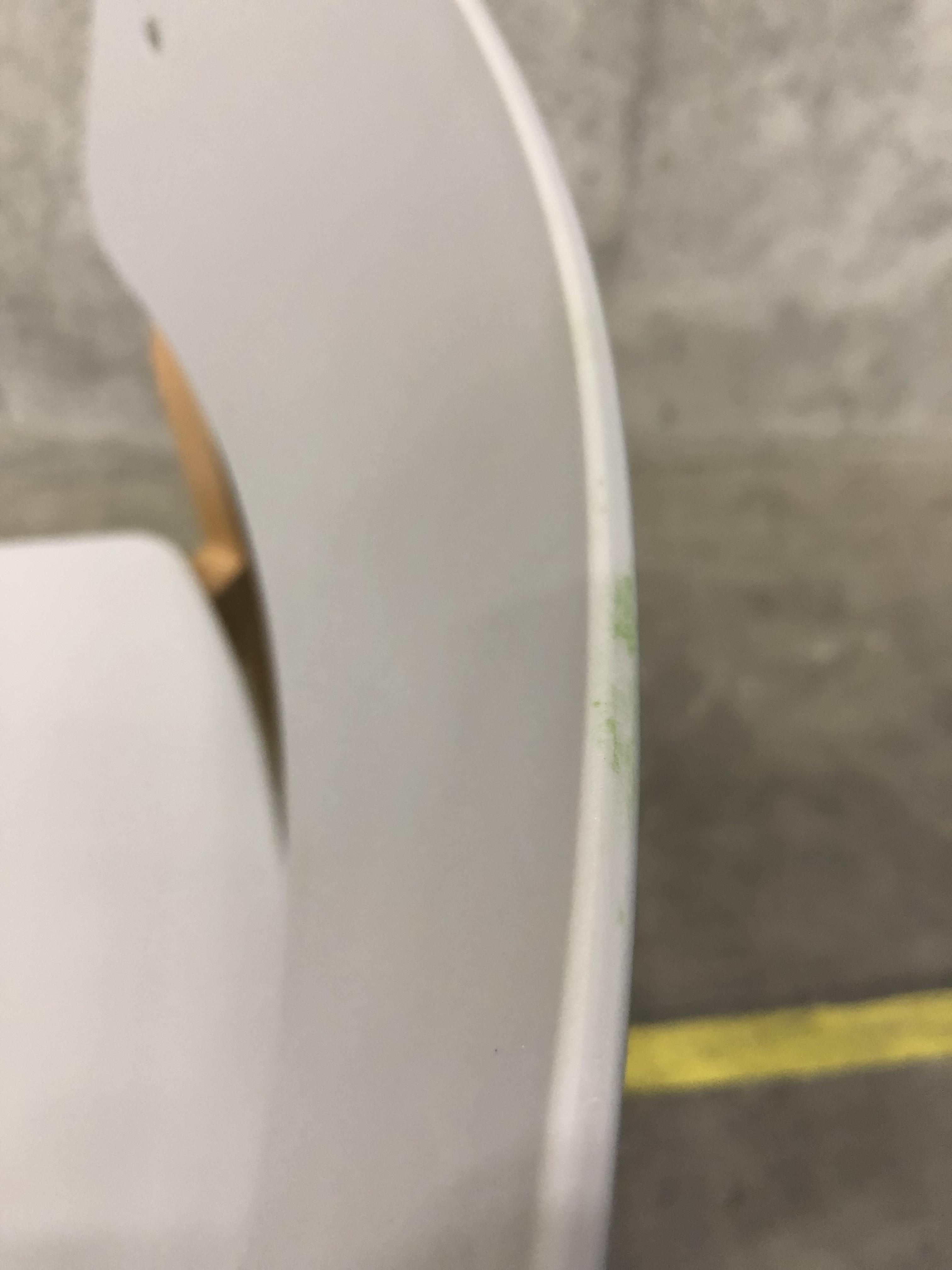 - かなり強い濃い黄ばみ・変色が商品全体にある。(例、座面・背もたれ、脚部等にある。)