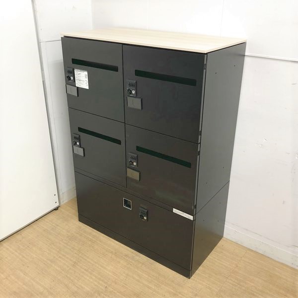 おしゃれなロッカーが入荷★4人用ダイヤルロッカー+1段ラテラル ブラック+木目天板 オカムラ パーソナルロッカー ※暗証番号検索キー別途作成承ります- 名古屋千種店