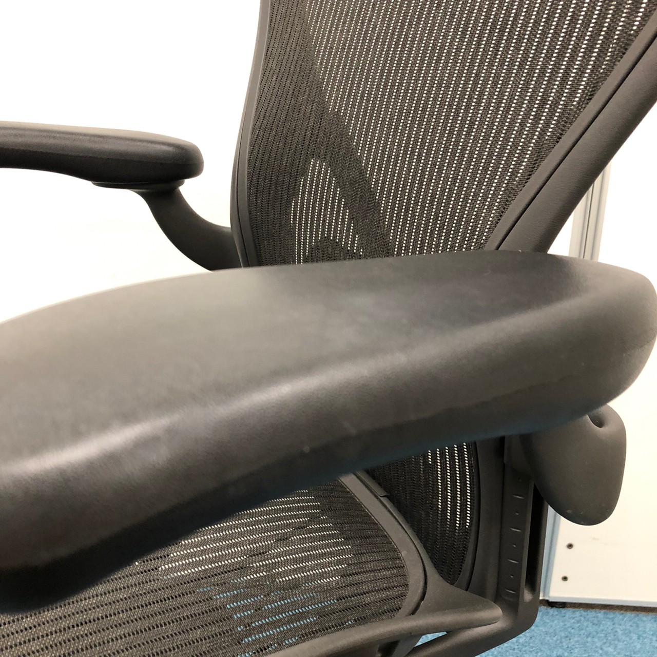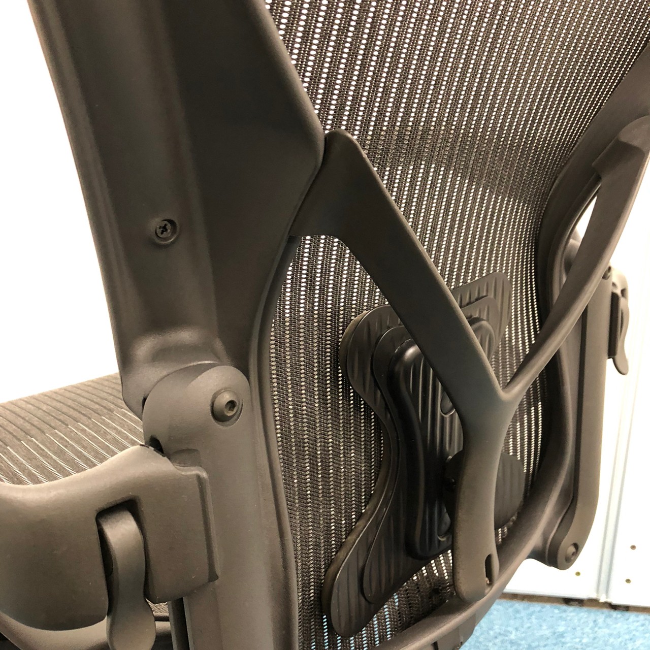 【★状態イマイチのためお安く!】■ハーマンミラー製 アーロンチェア Bサイズ 固定肘 ※キズあり・ランバーサポート無・昇降ガス圧弱めのためお安く!【訳あり特価品】