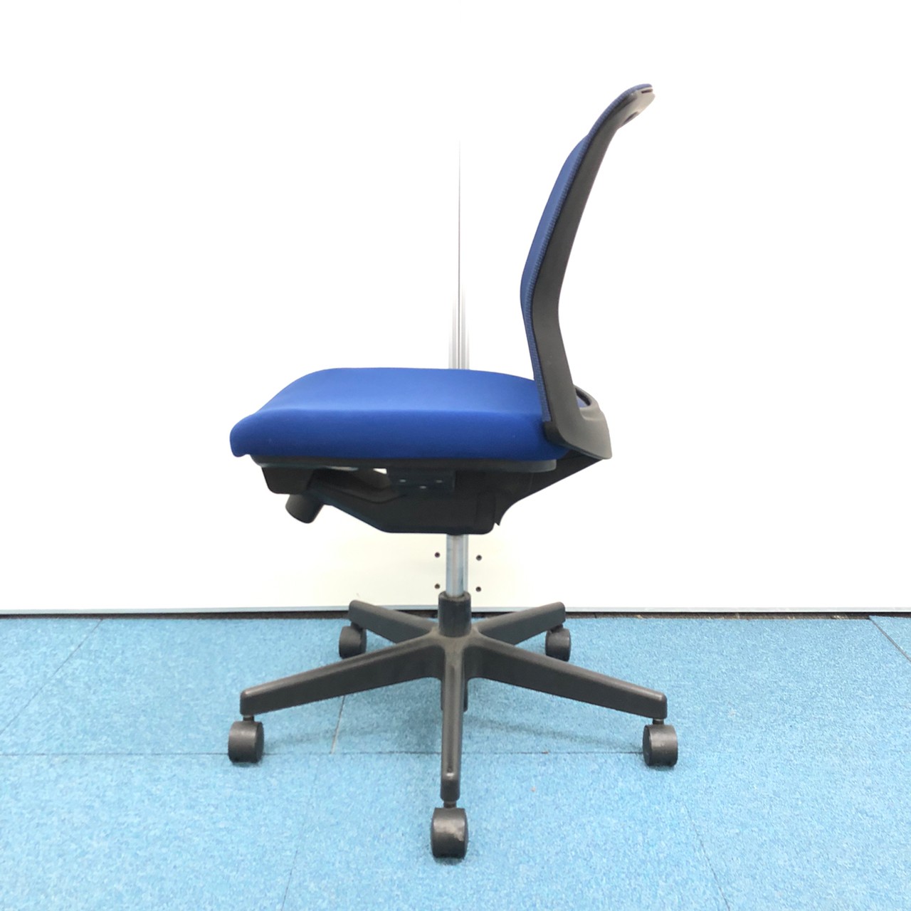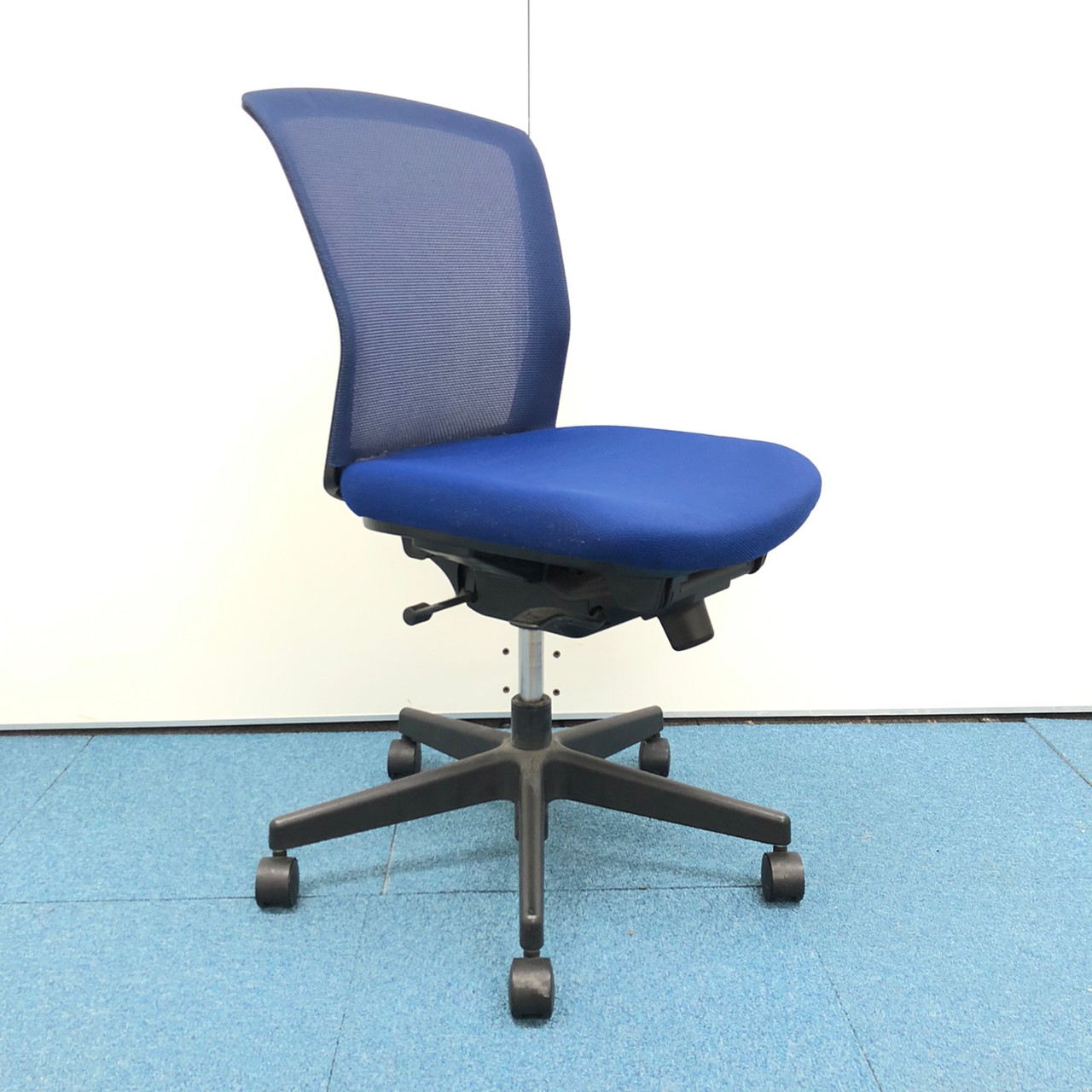 【在庫セール品・8脚限定】【T12】■コクヨ(KOKUYO)製 バリシアチェア(Varicia) 肘無ローバック ■背面メッシュ ■背面:ブラック 座面:ミディアムブルー ■ブラックシェル【ソフトなメッシュが背中にフィット! 必要機能をシンプルにまとめた軽快なオフィスチェア!】