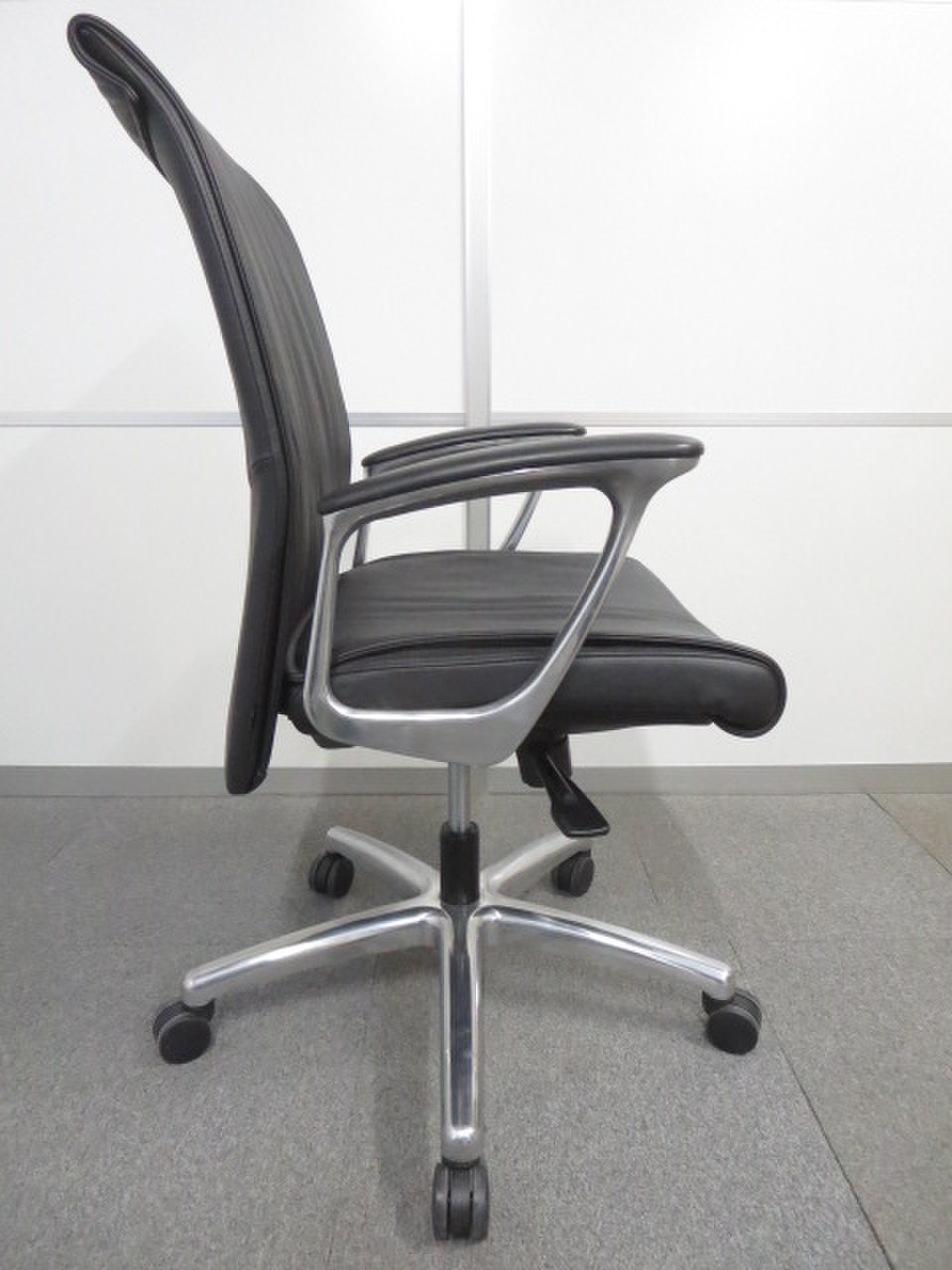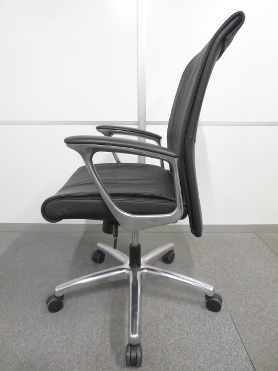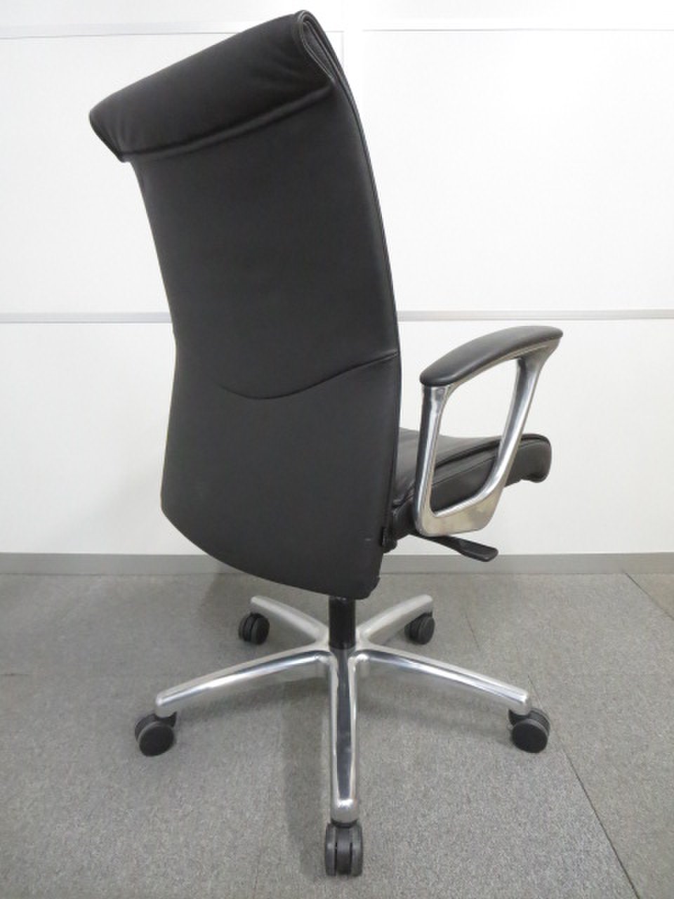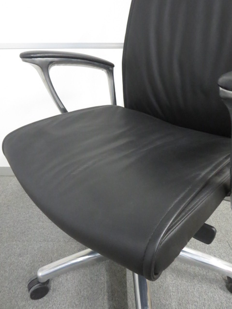 【上質な革張りタイプ!】■オカムラ製 マネジメントブチェア ブラック ■高級品がお買い得!【おつとめ品】【M】- 川崎店