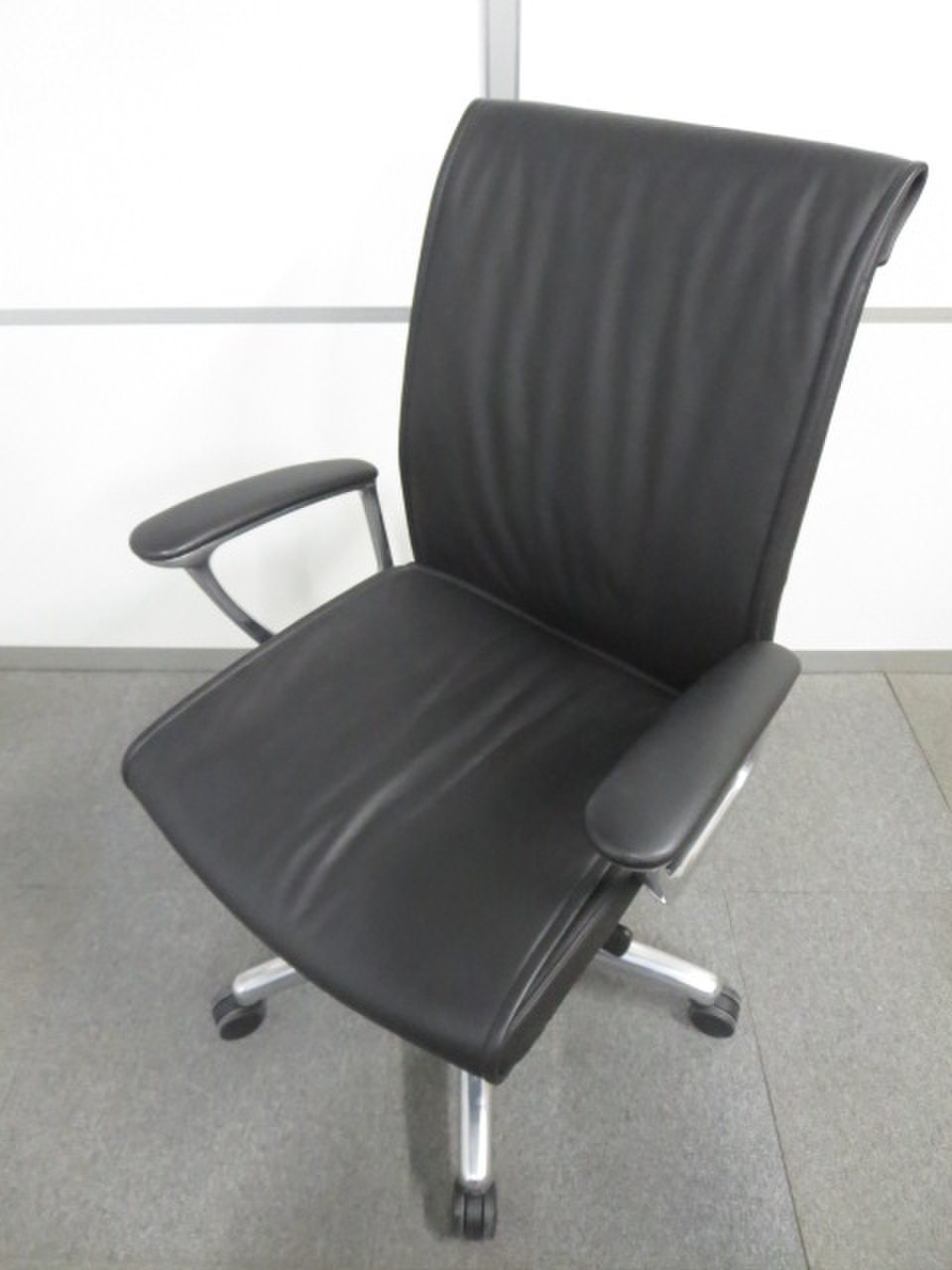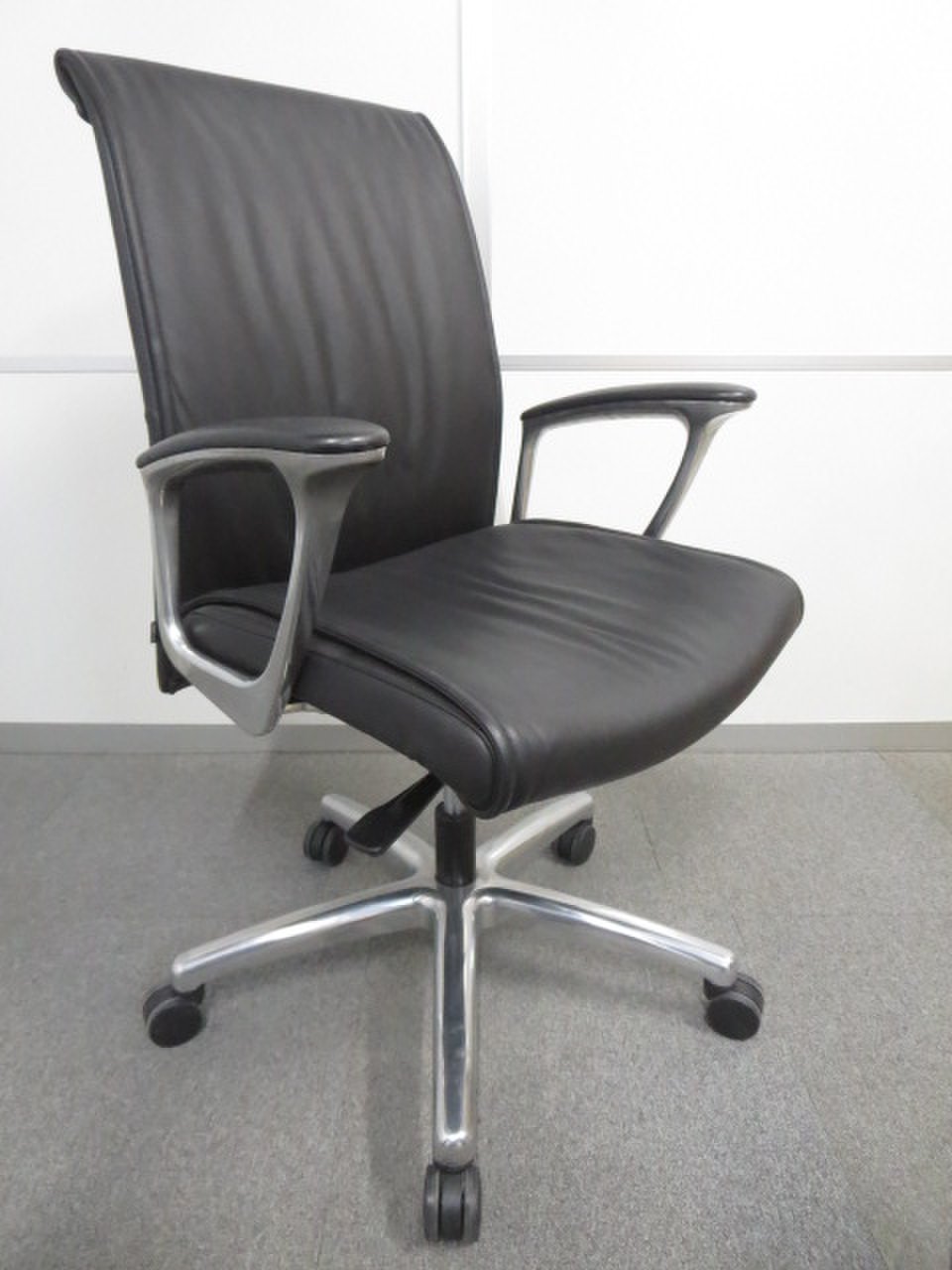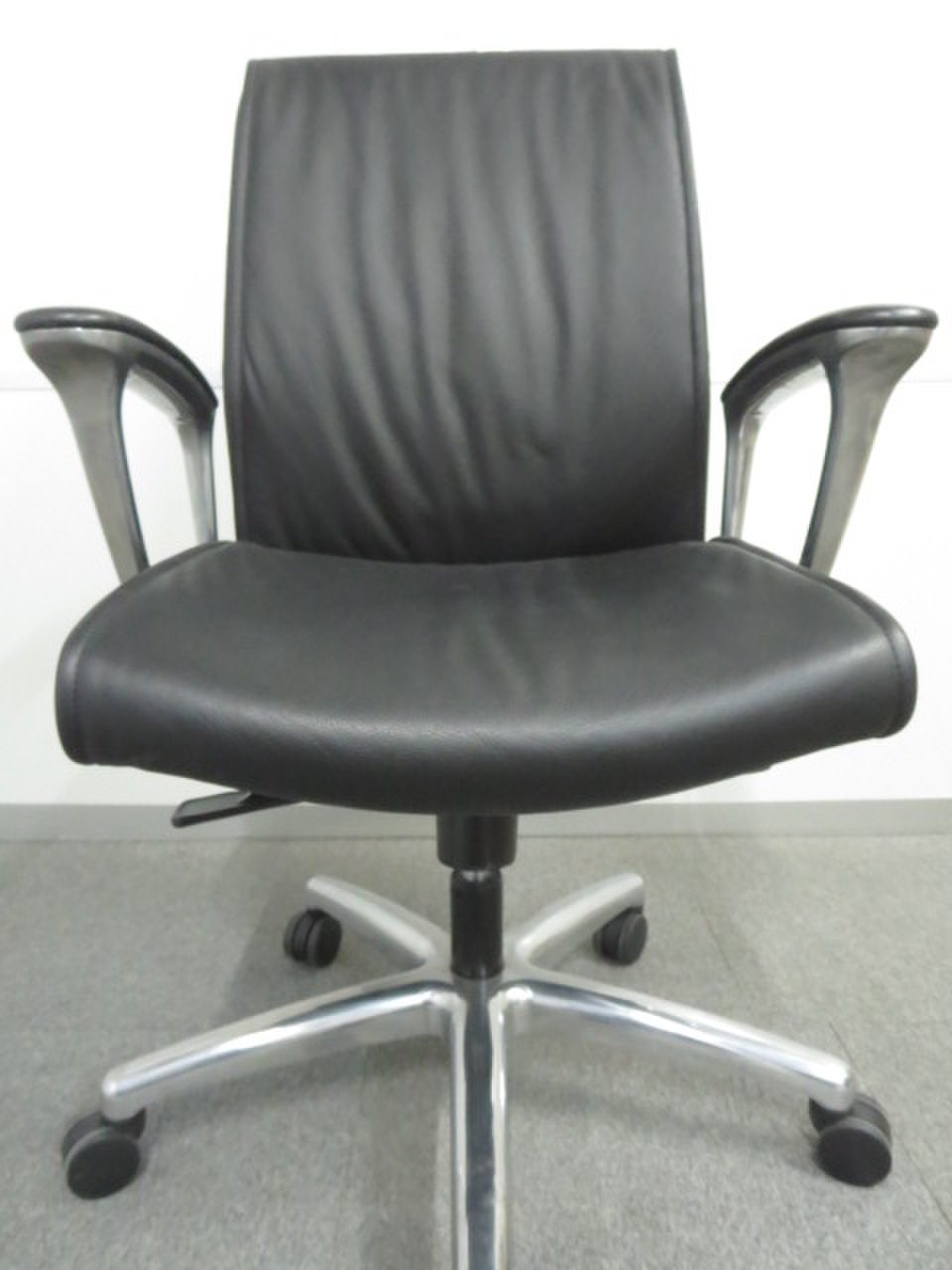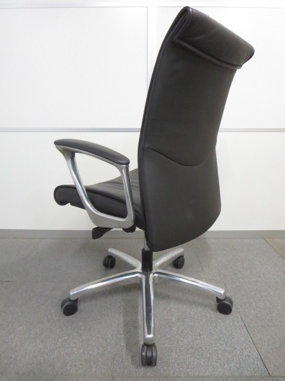 【上質な革張りタイプ!】■オカムラ製 マネジメントブチェア ブラック ■高級品がお買い得!【おつとめ品】【M】- 川崎店