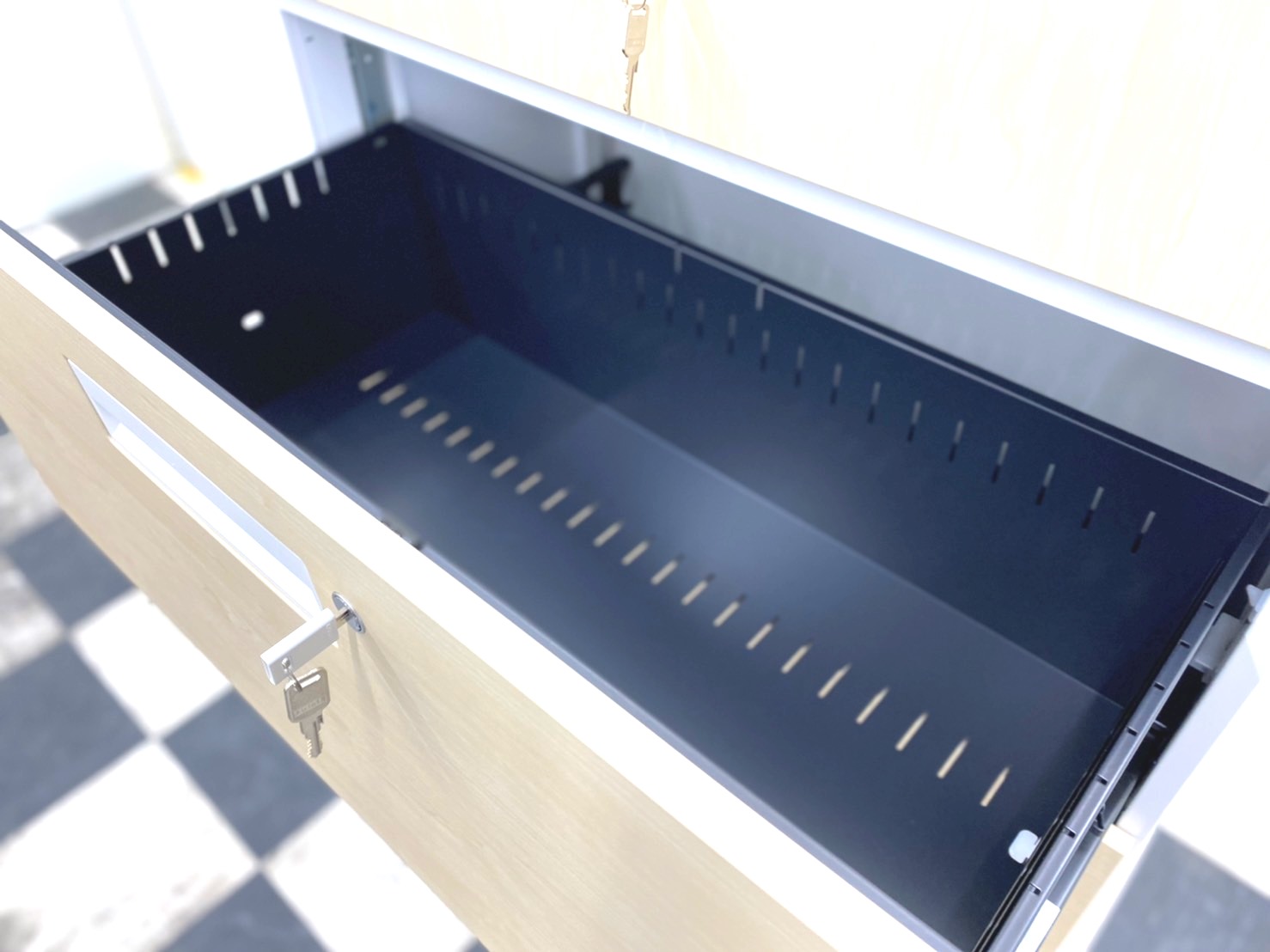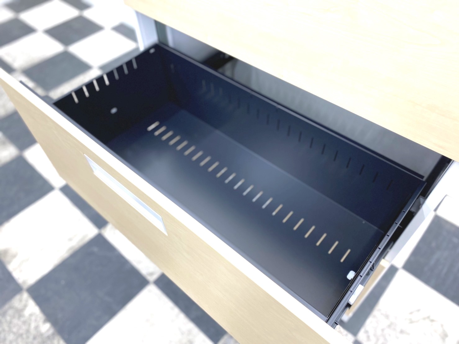 引き出し型で見下ろすように使用する為、書類の分類管理にたいへん便利で、