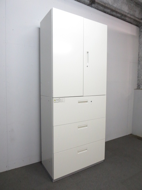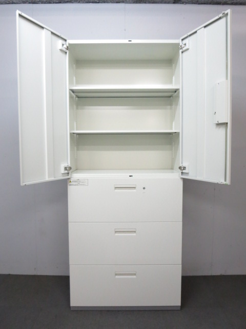 【人気のホワイトキャビ!入荷!】PLUS L6シリーズ 書庫セット(両開き+3段ラテラル) ■色:ホワイト 高さ:2150㎜- 埼玉本店
