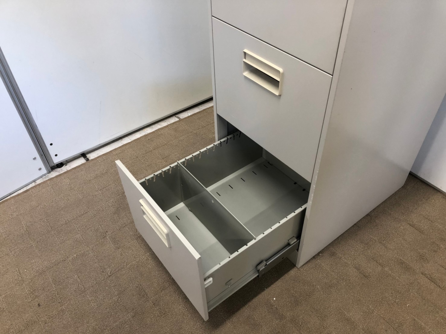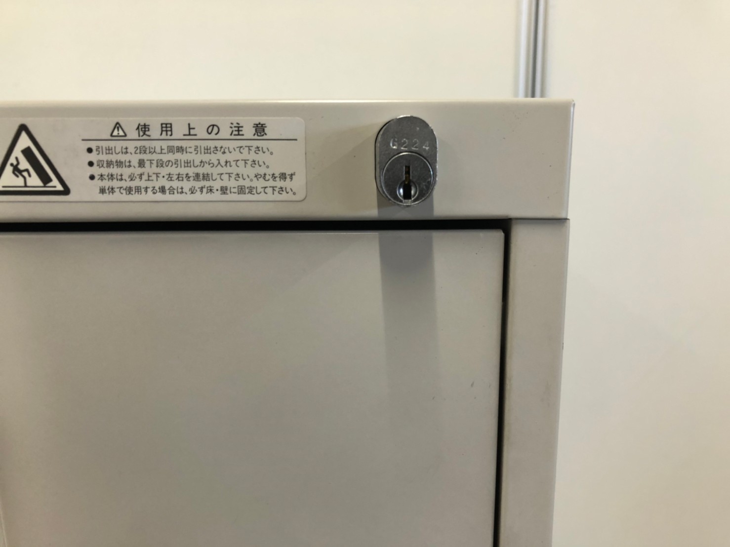 - 一部不具合ありそ引出の開閉不可、施錠不可、棚板無しといったの書庫の本来の効用を果たすための機能以外の一部が使用不可(例、扉、引出の開閉がしづらいなどがある。 )