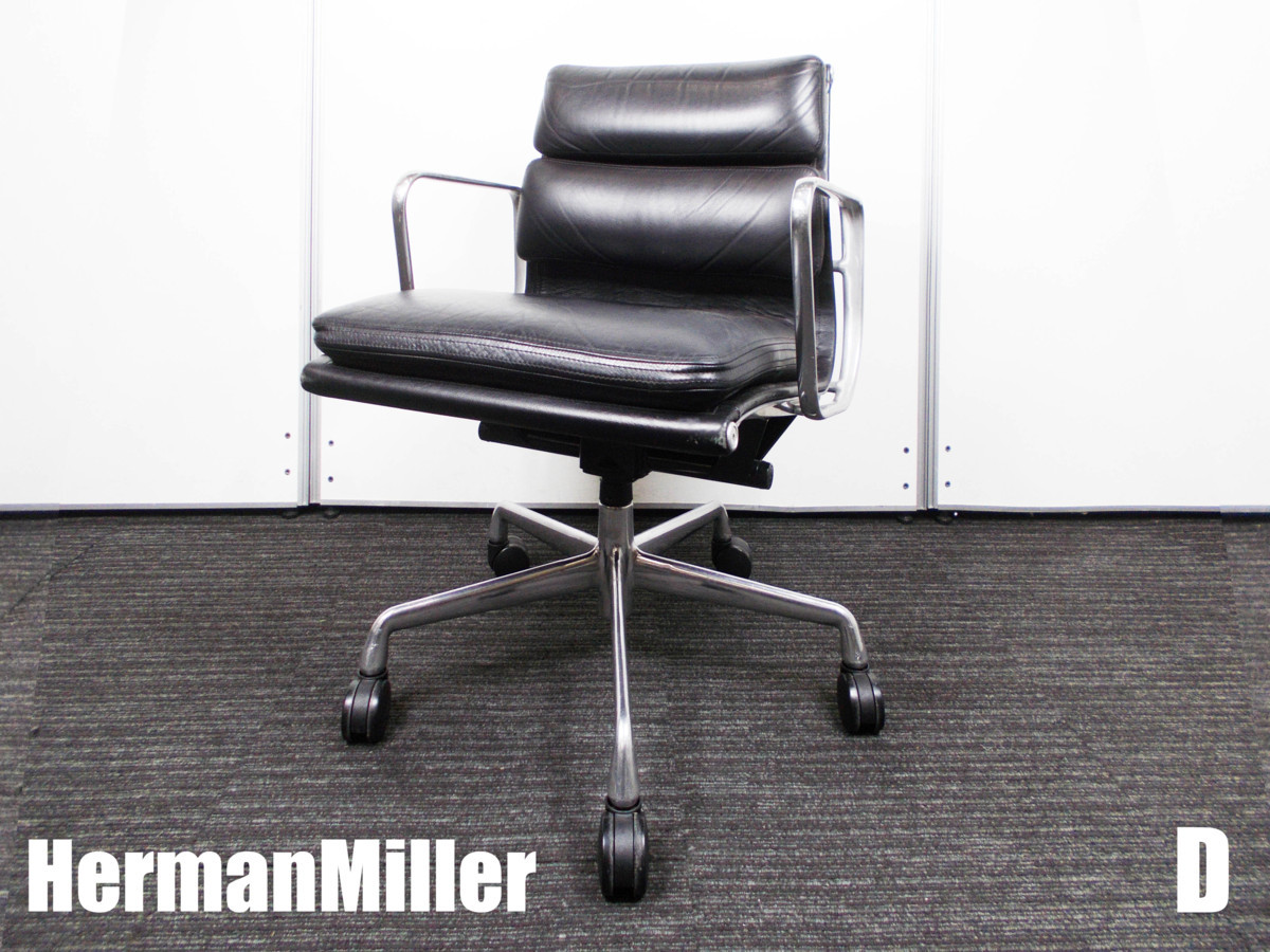 D)HermanMiller/ハーマンミラー イームズ ソフトパットチェア 黒 本革- デザイナーズ家具センター