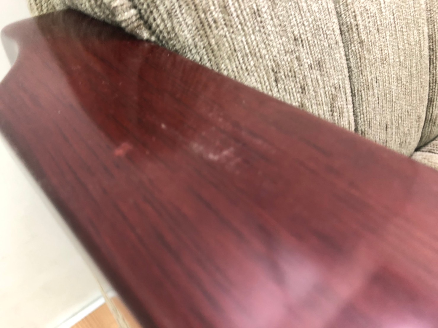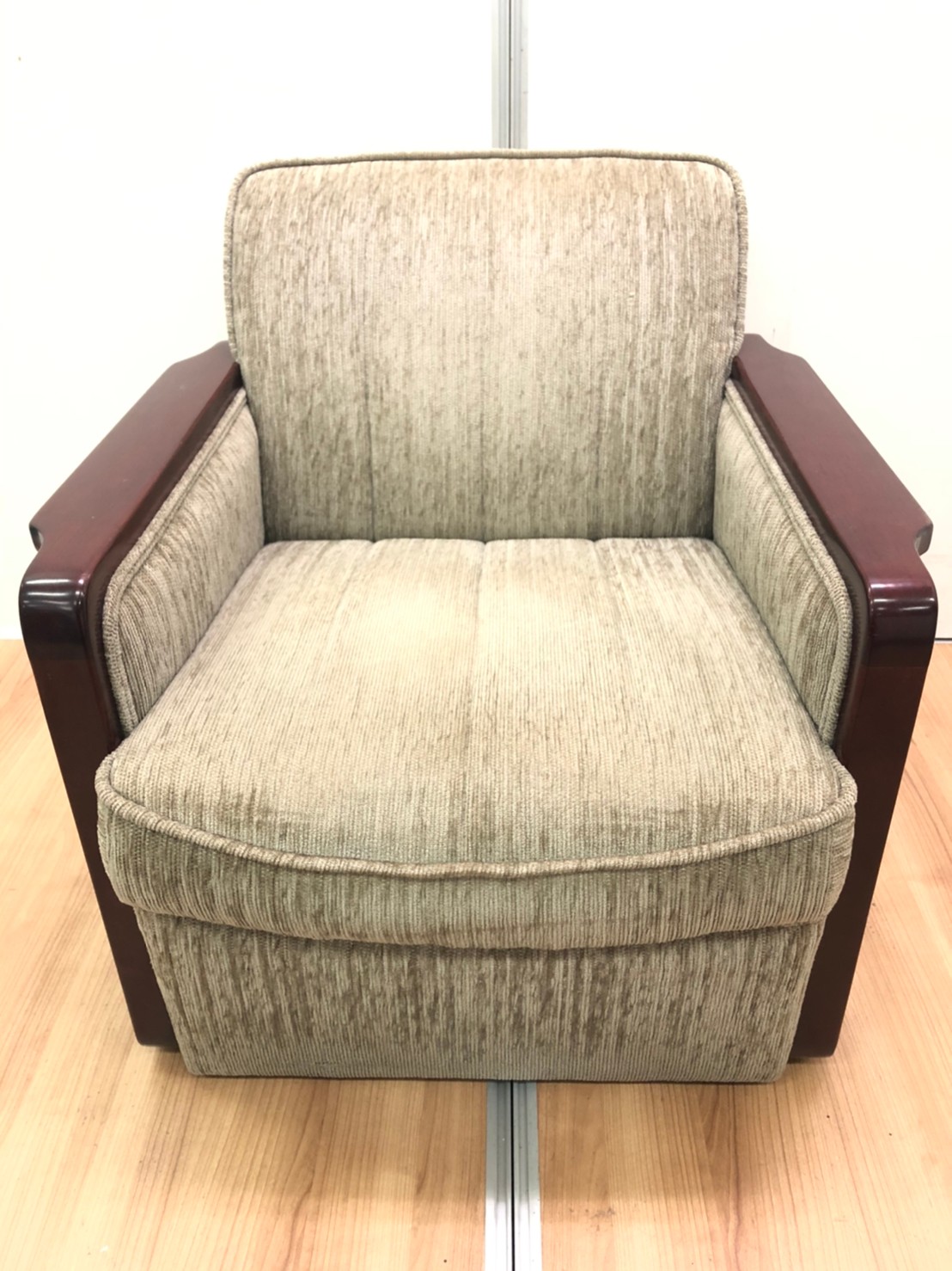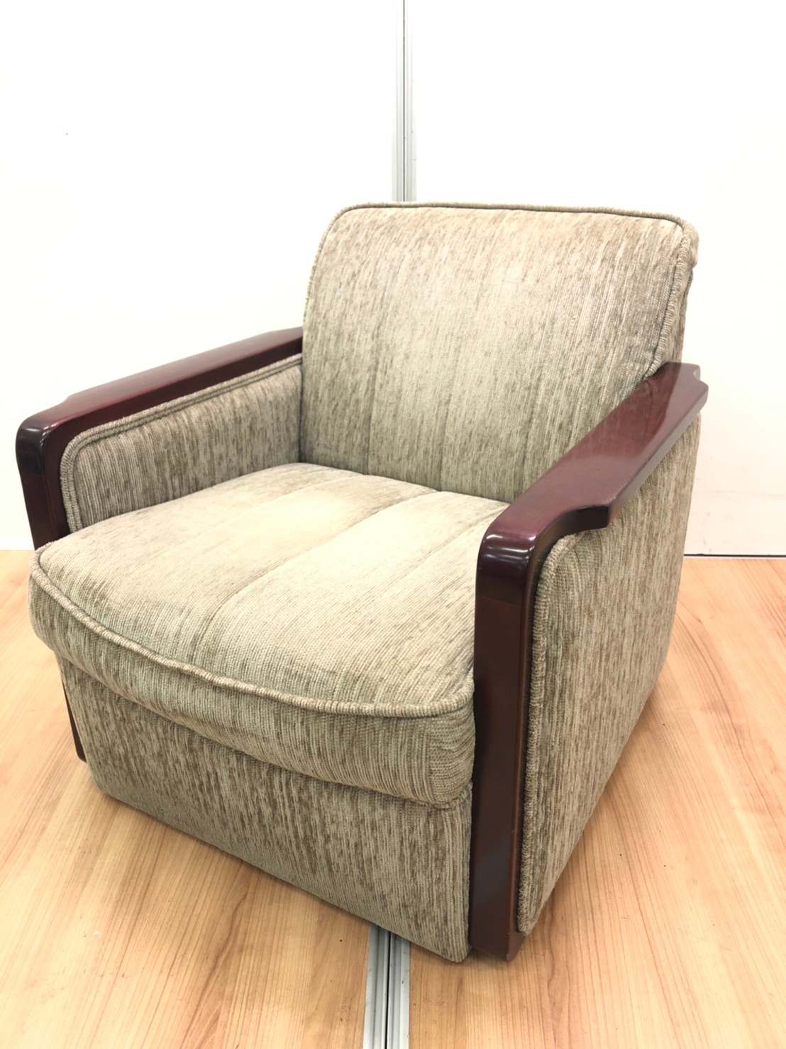 肘置きの木部分には小キズがございます。