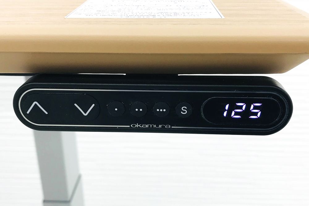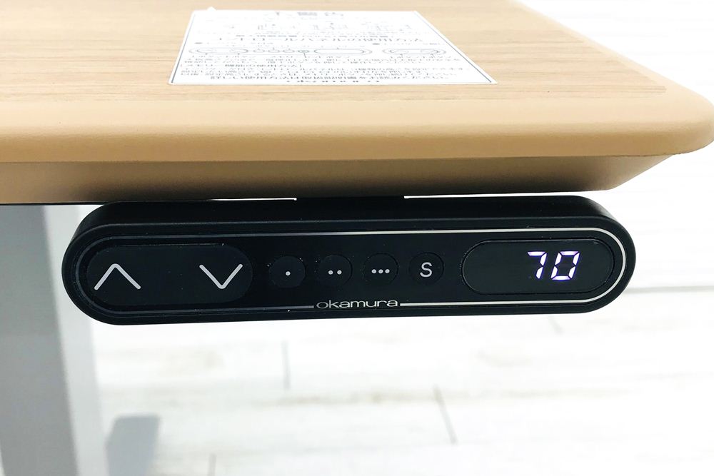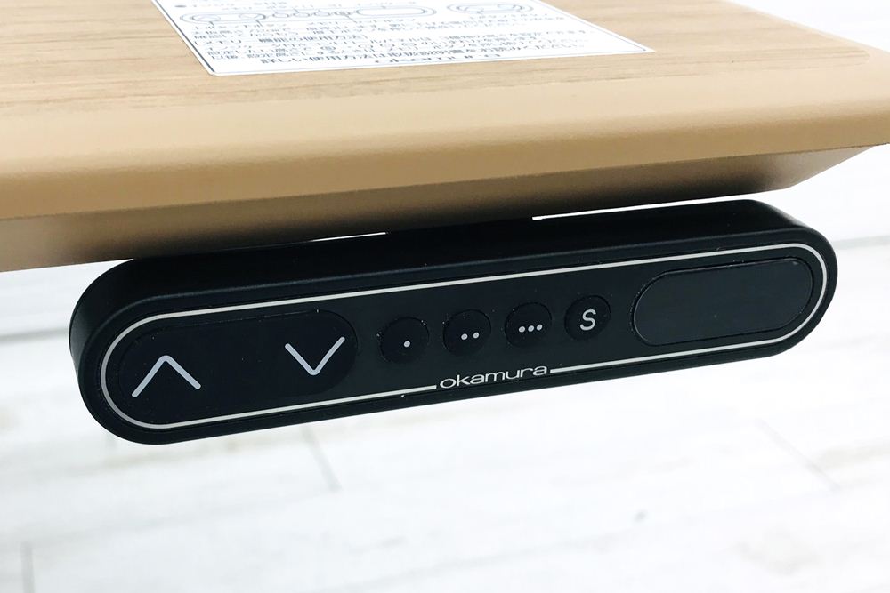 デスクの高さ設定は天板下の上下ボタンを押すだけ。
