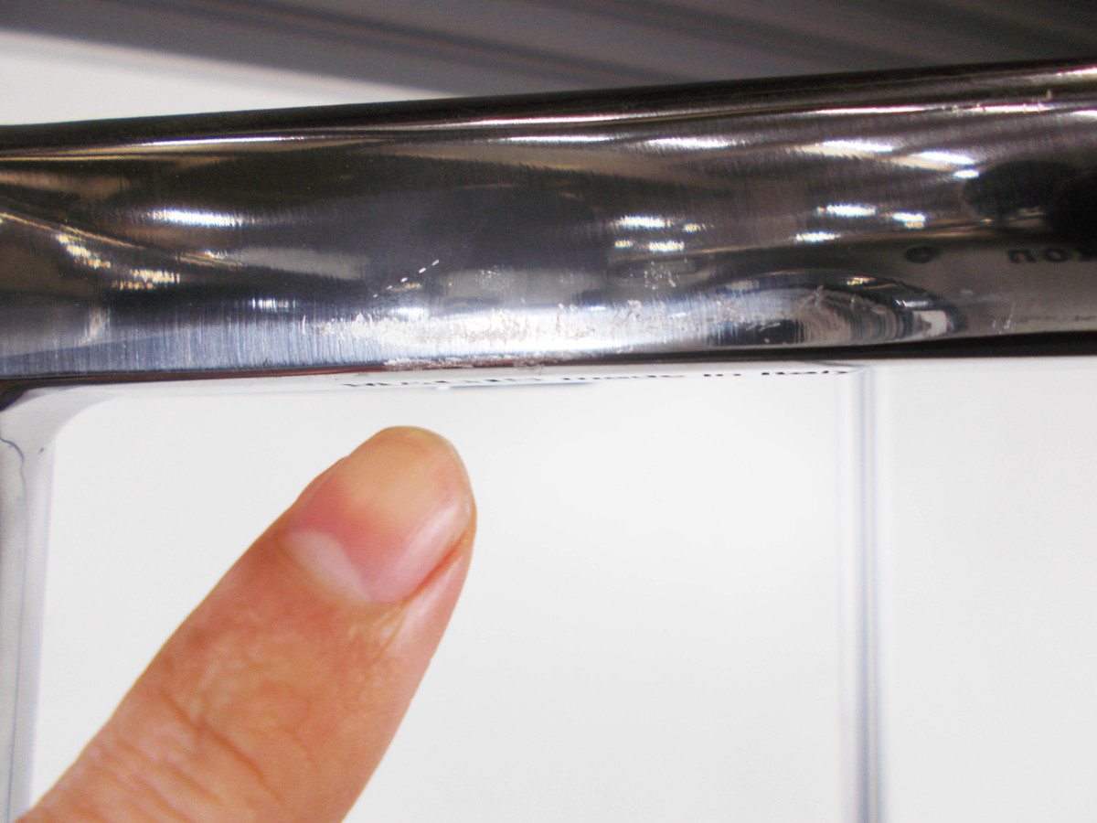 - あり黄ばみ・変色が広い範囲にうっすらある、または濃い黄ばみ・変色が一部ある。(例、正面、背部、サイド部分にある。)