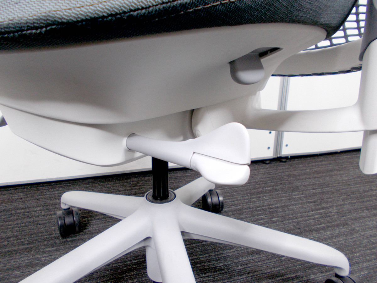 - 座ったまま、レバー操作一つで、簡単に座面を前傾できます。前傾姿勢を取ることが多いデスクワーカーに最適です。