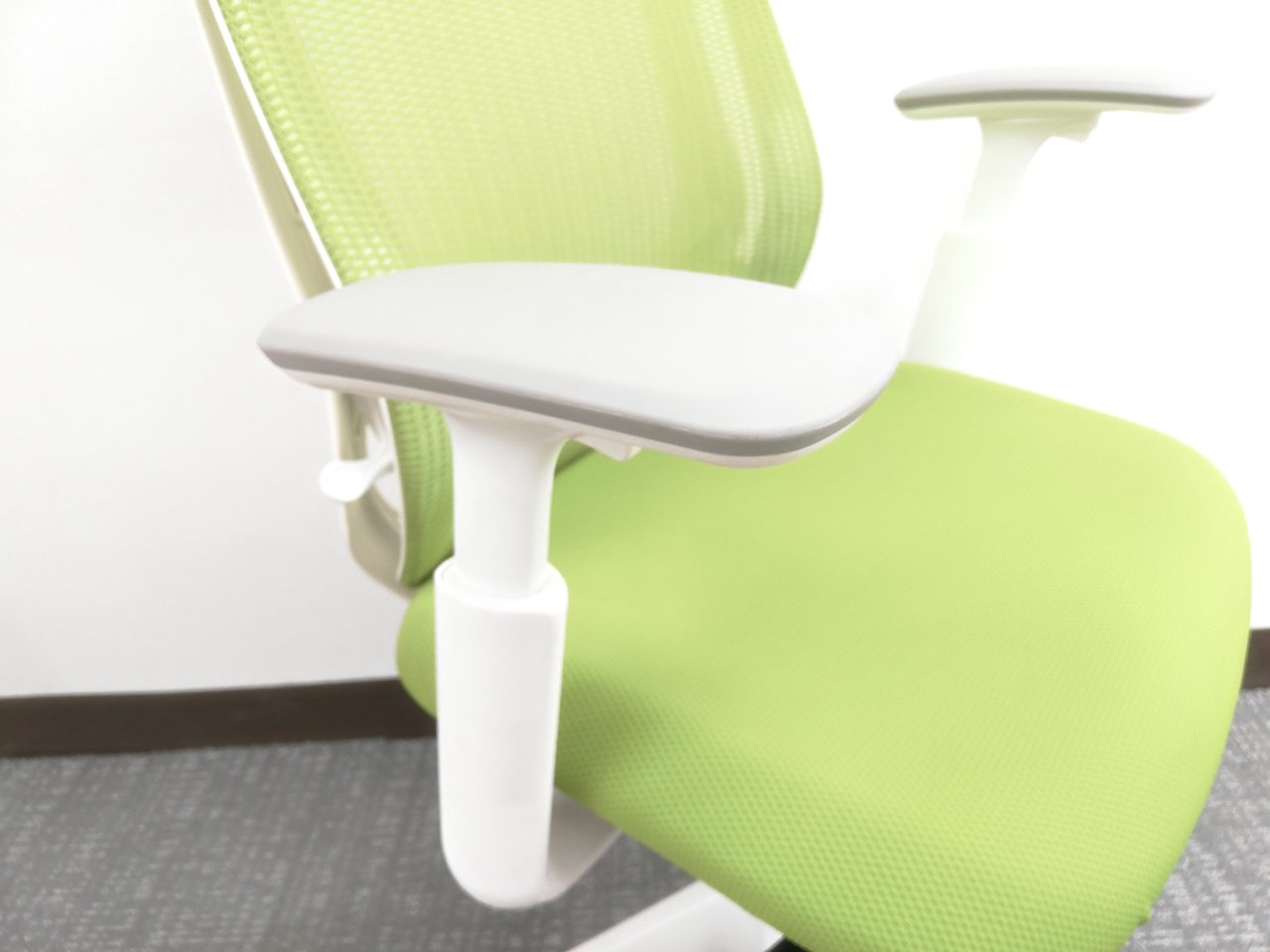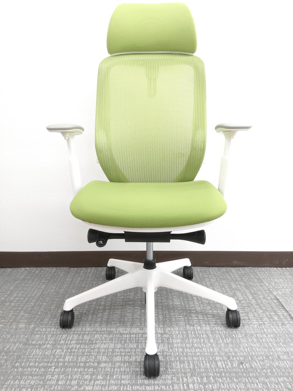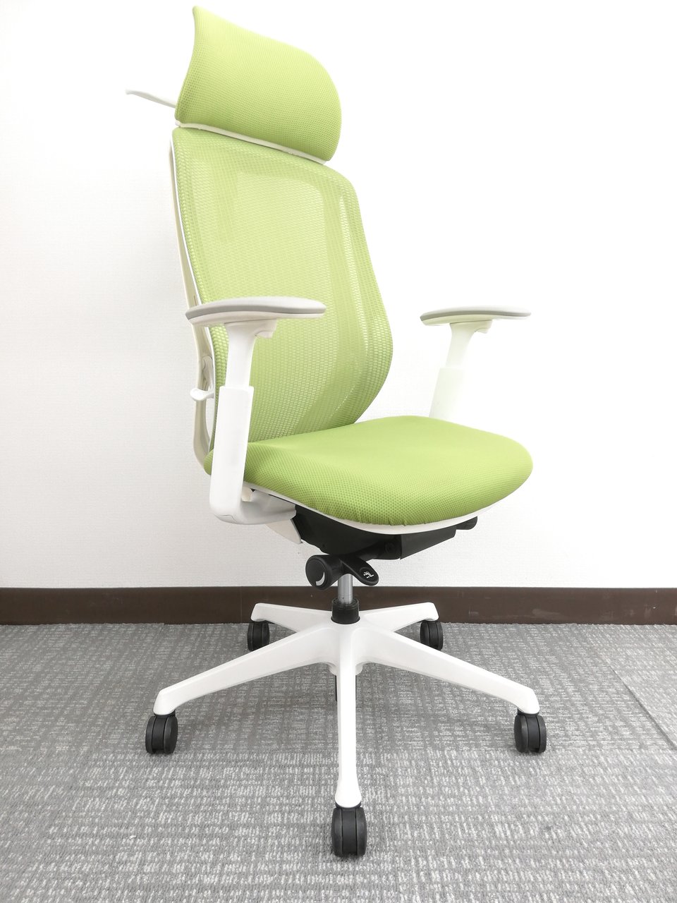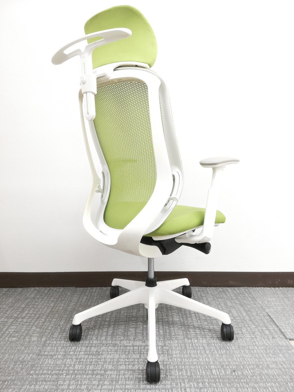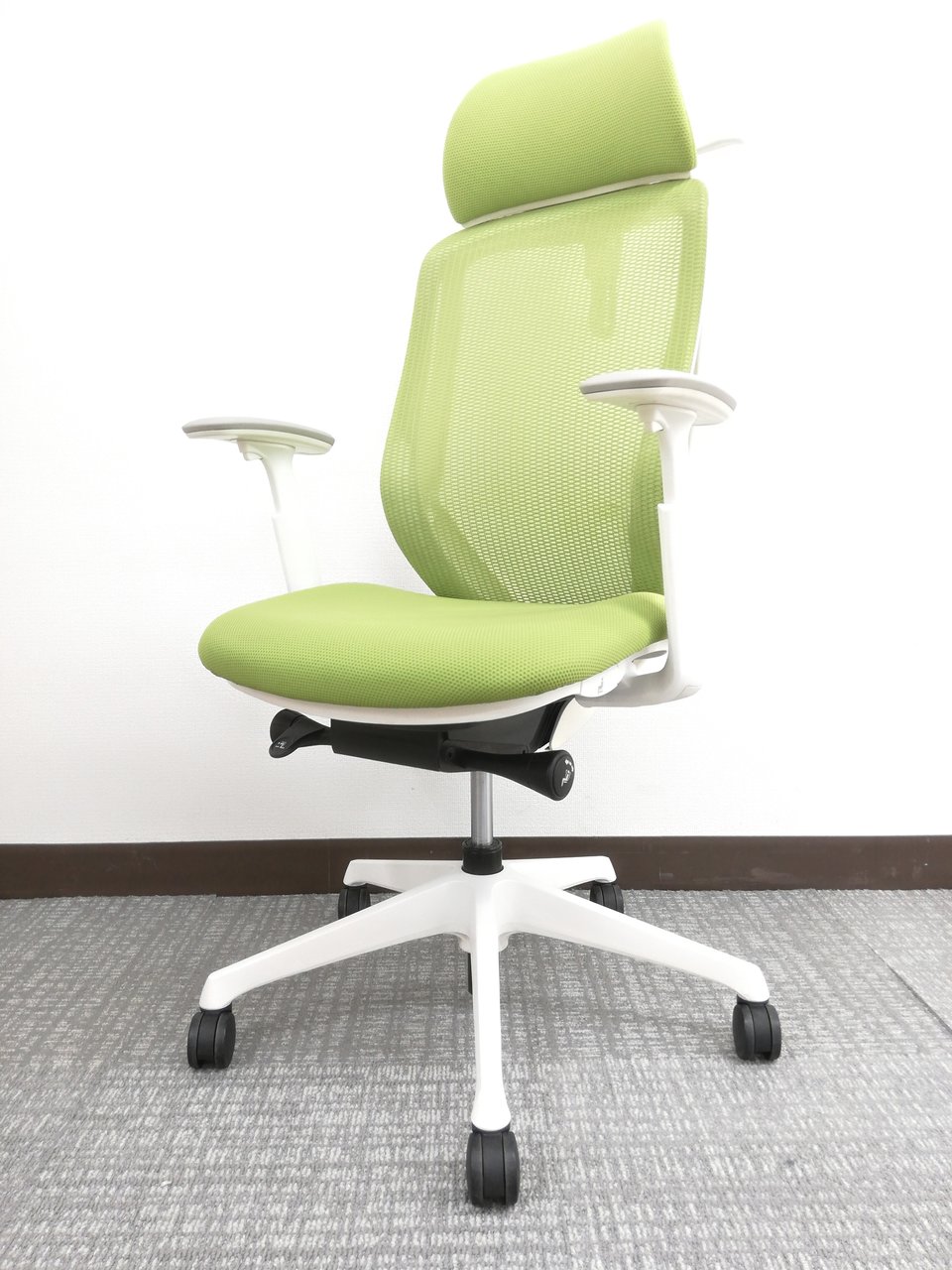 【2018年製】さわやかグリーンシルフィー(Sylphy)チェア※ヘッドレスト&可動肘掛け付仕様◆オカムラ製- オフィスチェア店