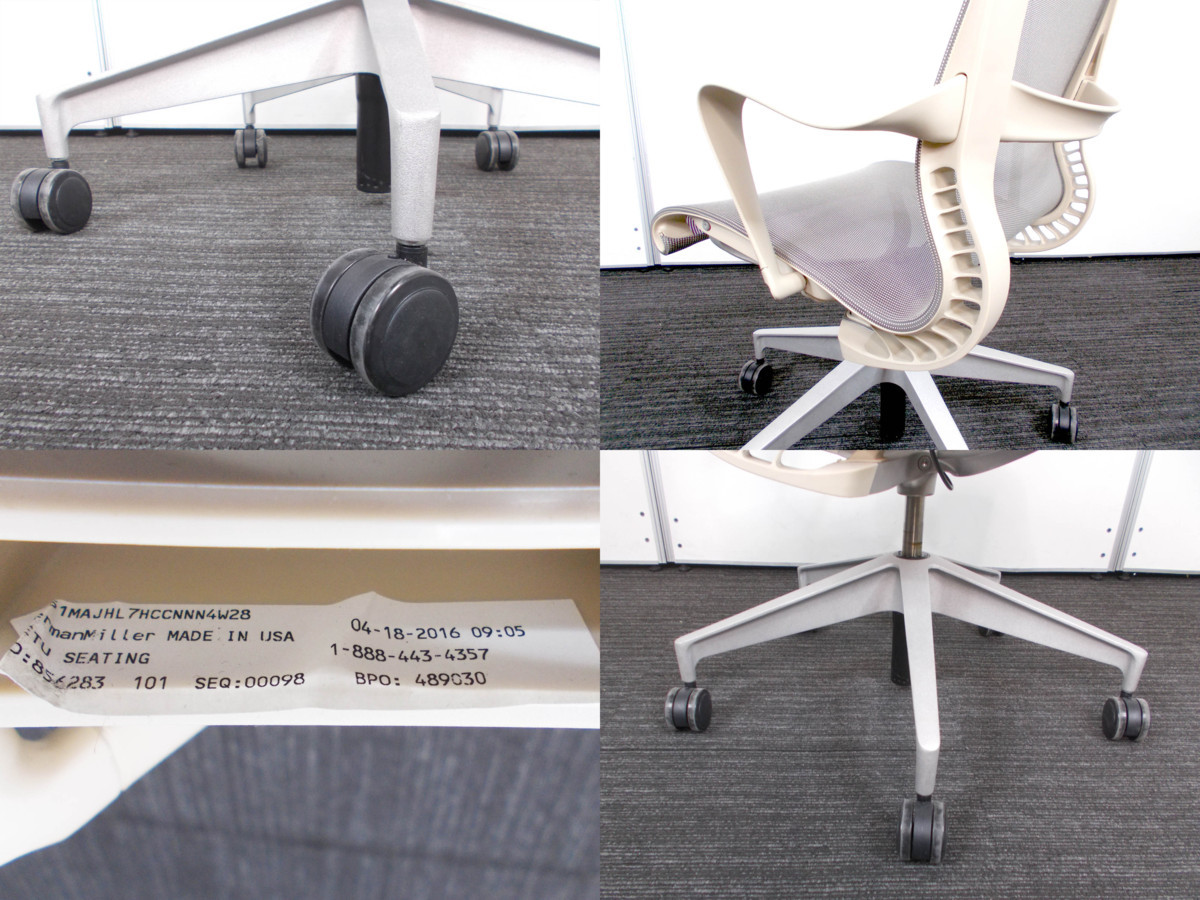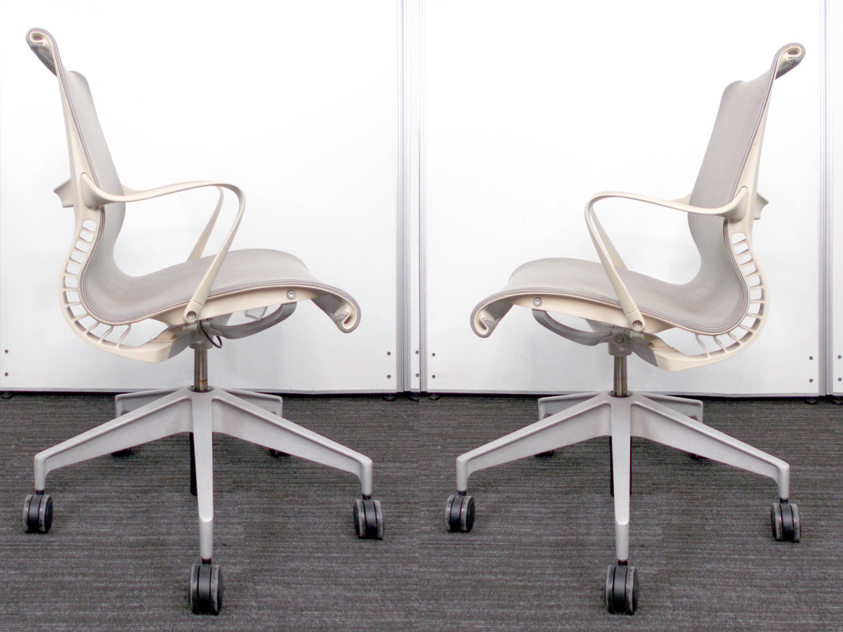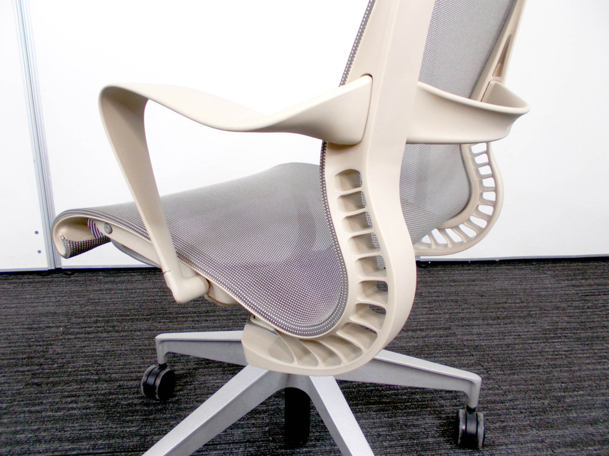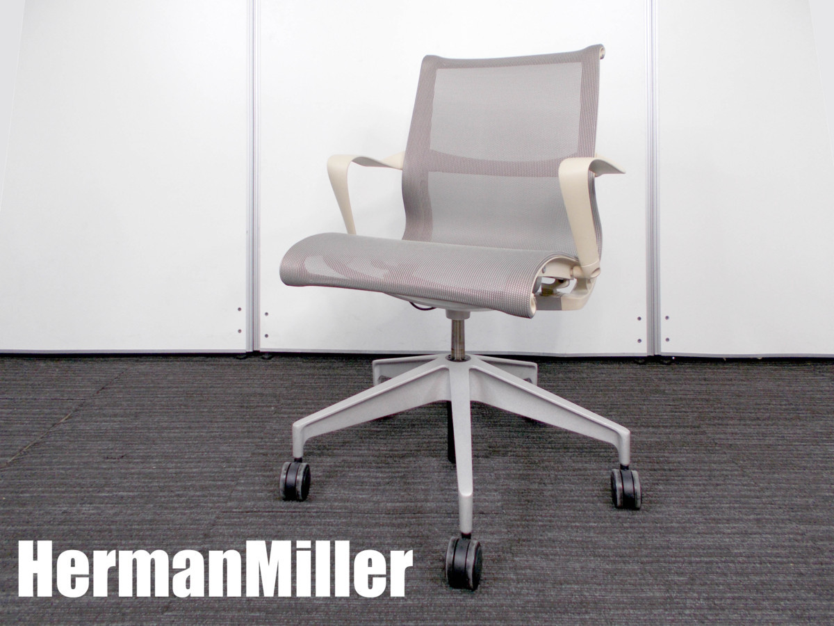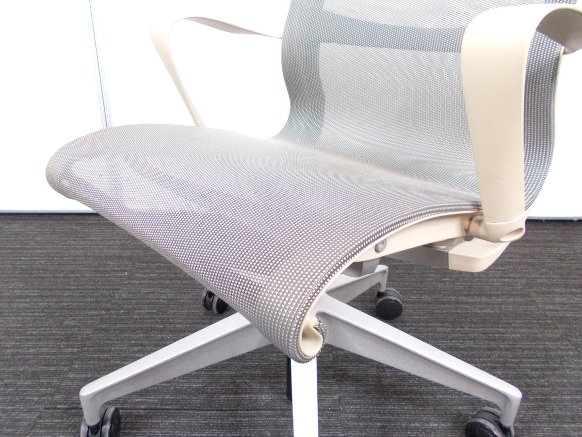 ハーマンミラー Setu / セトゥ チェア ゴムキャスター仕様 ベージュ系xグレー系 アーム付き 新品定価11万- デザイナーズ家具センター