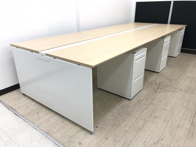 【倉庫在庫】【4~6名推奨!!癒し系のナチュラルカラー天板フリアドの入荷です!!大量入荷!!】■オカムラ製 プロユニットフリーウェイ ■4~6人用 ■W3600×D1200×H720 ■ナチュラル天板 ■ホワイト脚 ■オフィスバスターズ東大阪店