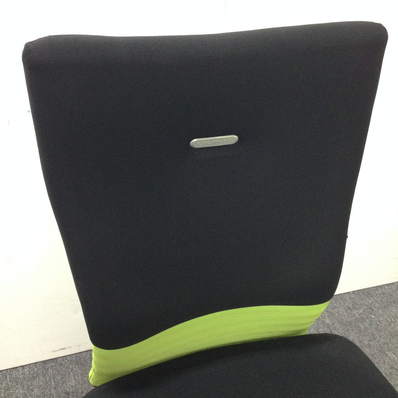【人間工学に基づいた快適な座り心地! 背あてのしなやかな曲線が背中にフィット!】■オカムラ製 フィーゴチェア (feego) 肘無しハイバック シームレスタイプ ■ブラック×グリーン※コートハンガー外し跡のある商品となります。