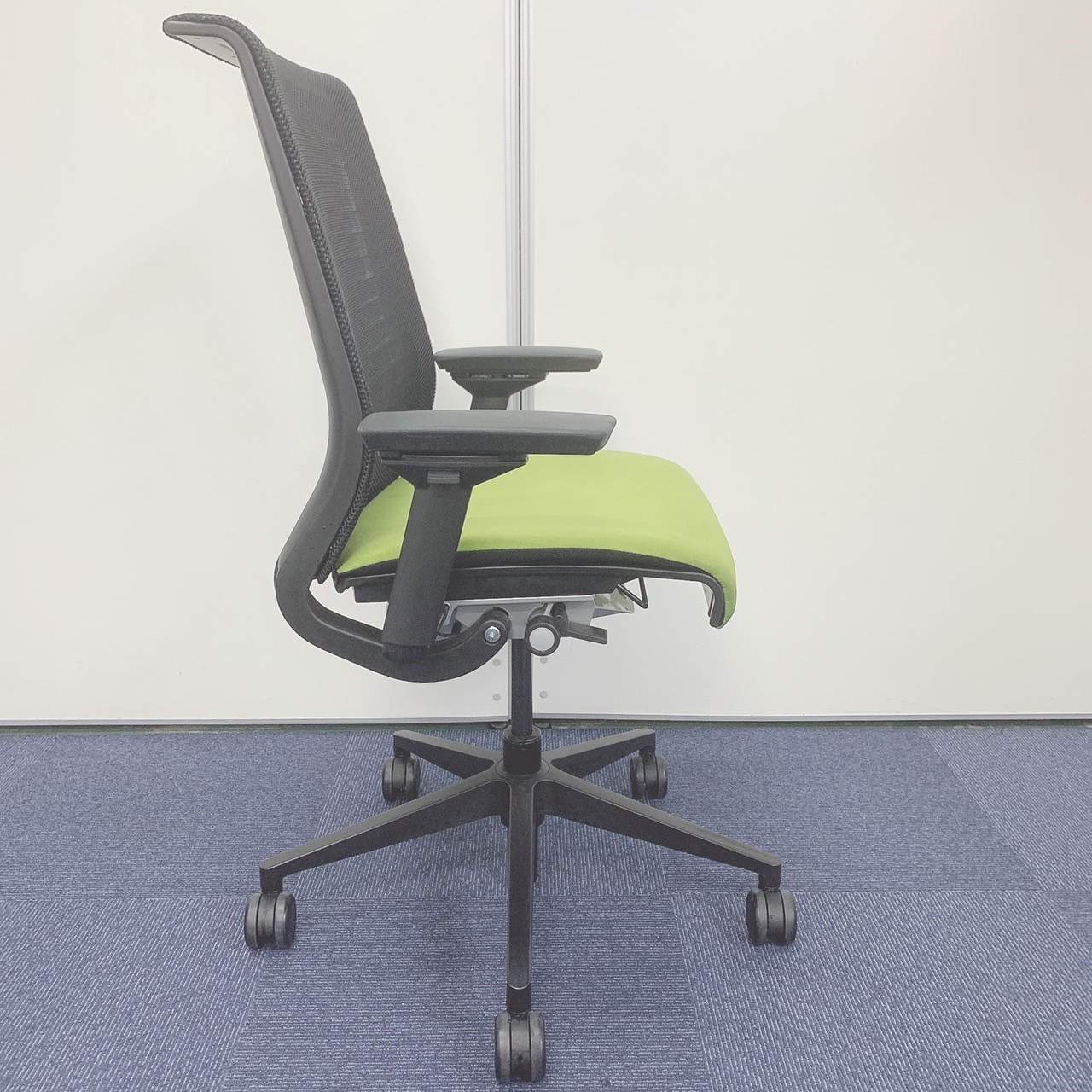 快適な座り心地に不可欠な調節機能である、上下昇降、座面の奥行き調整、リクライニングなどを備えており、操作もわかりやすく好評です。 特に、座面の奥行きは、座面下の左右に通った細いバーで調整でき、座ったままで軽やかに滑るように調整が可能です。 価格面では、新品では高めですが、中古は流通も多く、定価の3割前後の価格で高級チェアの座り心地を手に入れることができます!