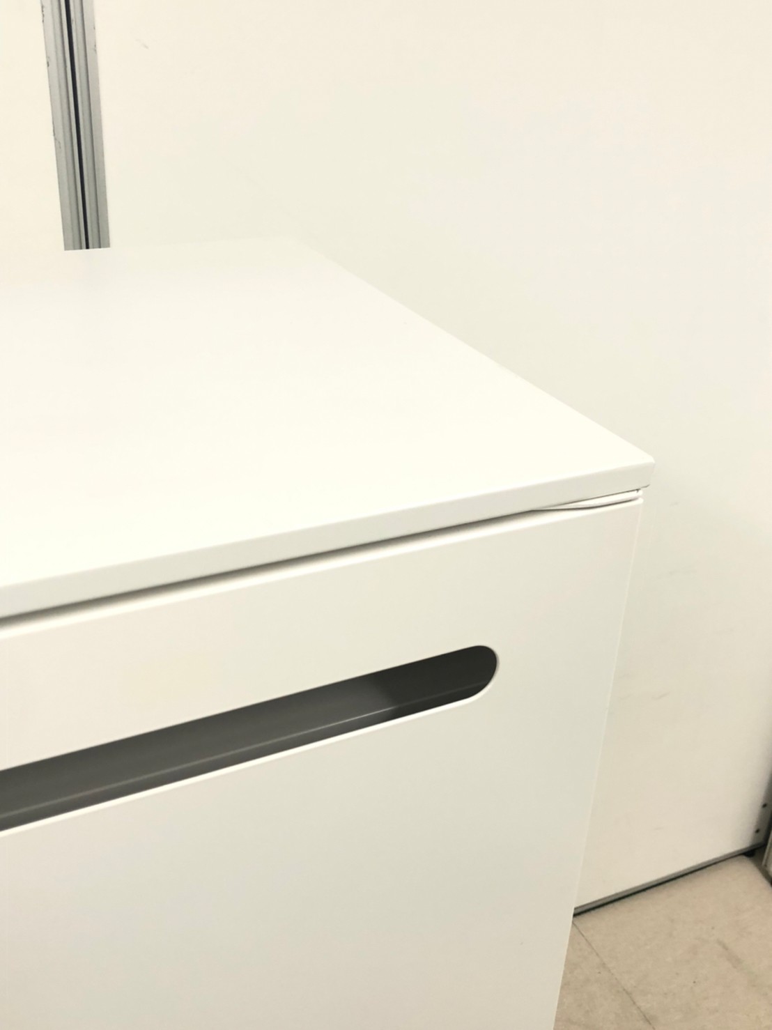 - かなり強い黄ばみ・変色が商品全体にある。(例、天板、正面、背部、サイド部分にある。)