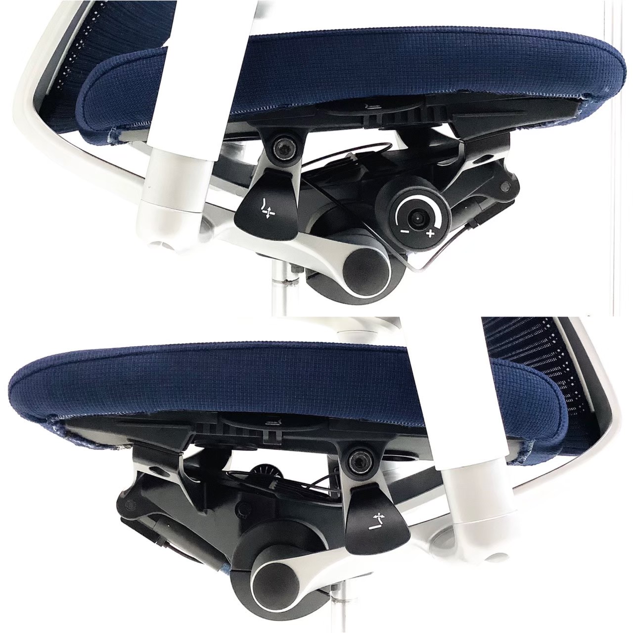 もちろん座り心地もコンテッサの直系ですから快適です。座面の素材はクッションとメッシュの2タイプあります。私、個人的には座面の中心部分でも外側でもテンションが変わらないクッション素材が、足を閉じても開いても快適なので推しです!"