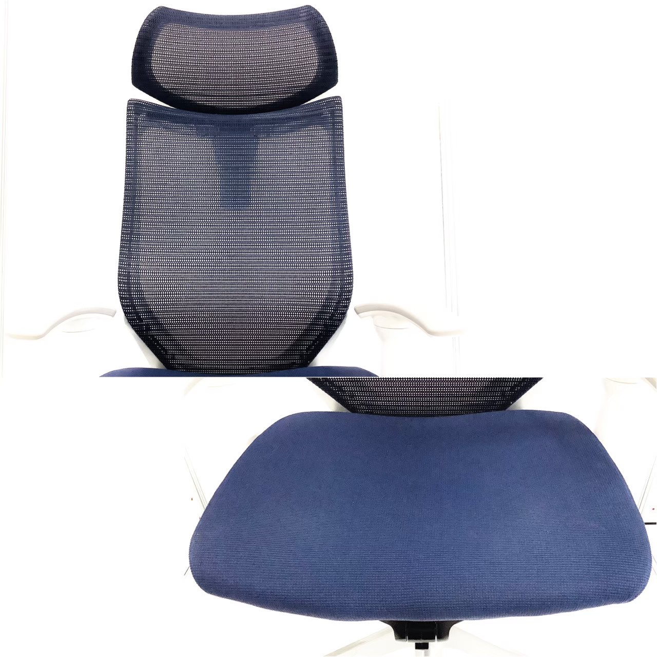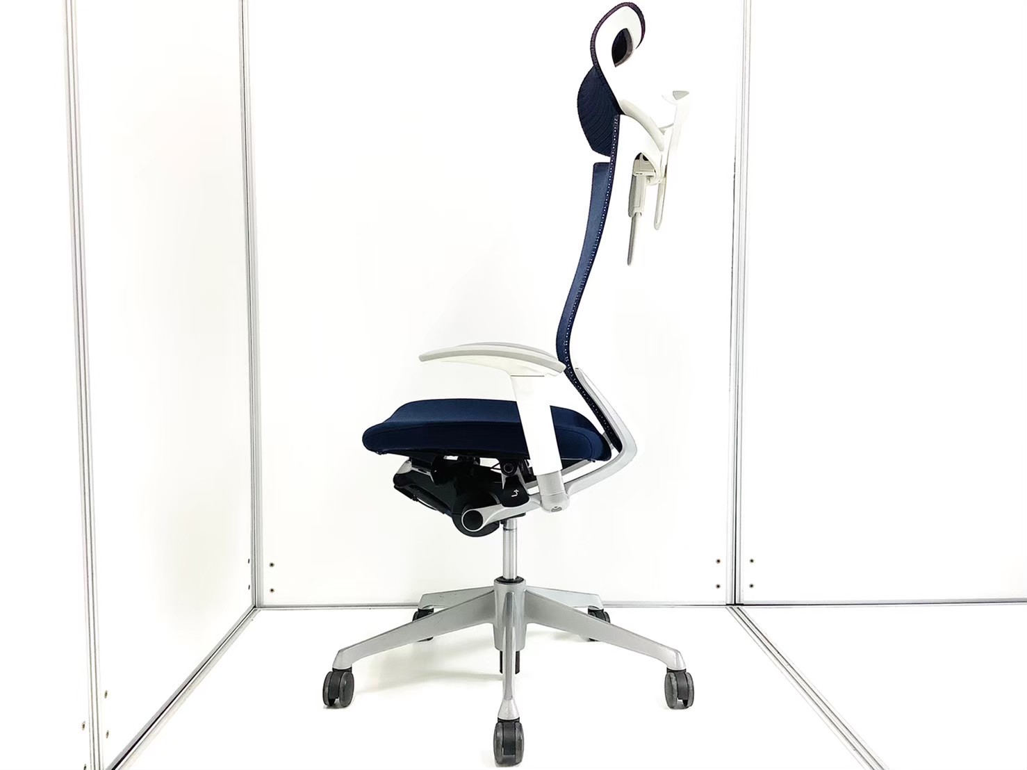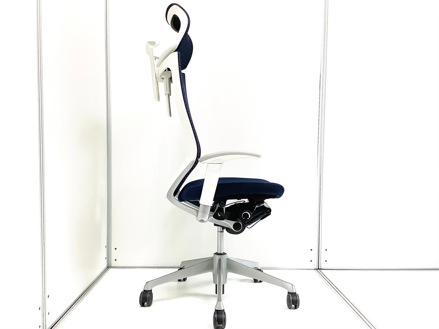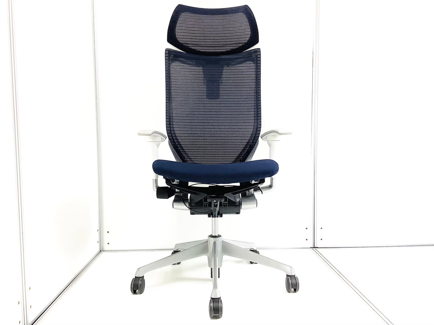 【2脚入荷】【オフィスの執務室、会議室におすすめ!】■オカムラ(okamura)製 バロン(Baron)チェア 肘付き ハイバック 背面メッシュ ■可動肘 ■ダークブルー × ホワイトシェル【硬めの座面が大人気!国産メッシュチェアの代表格!】