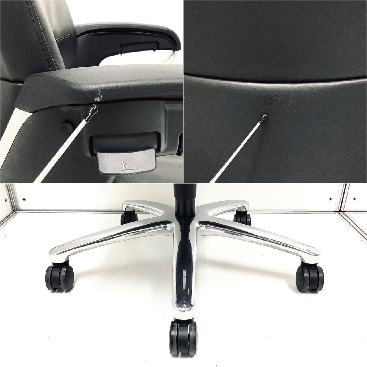 - 一部不具合ありそのチェアの本来の効用を果たすための機能以外の数か所が使用不可の状態にある。(例:背もたれロック不良と奥座調整等の内数カ所)