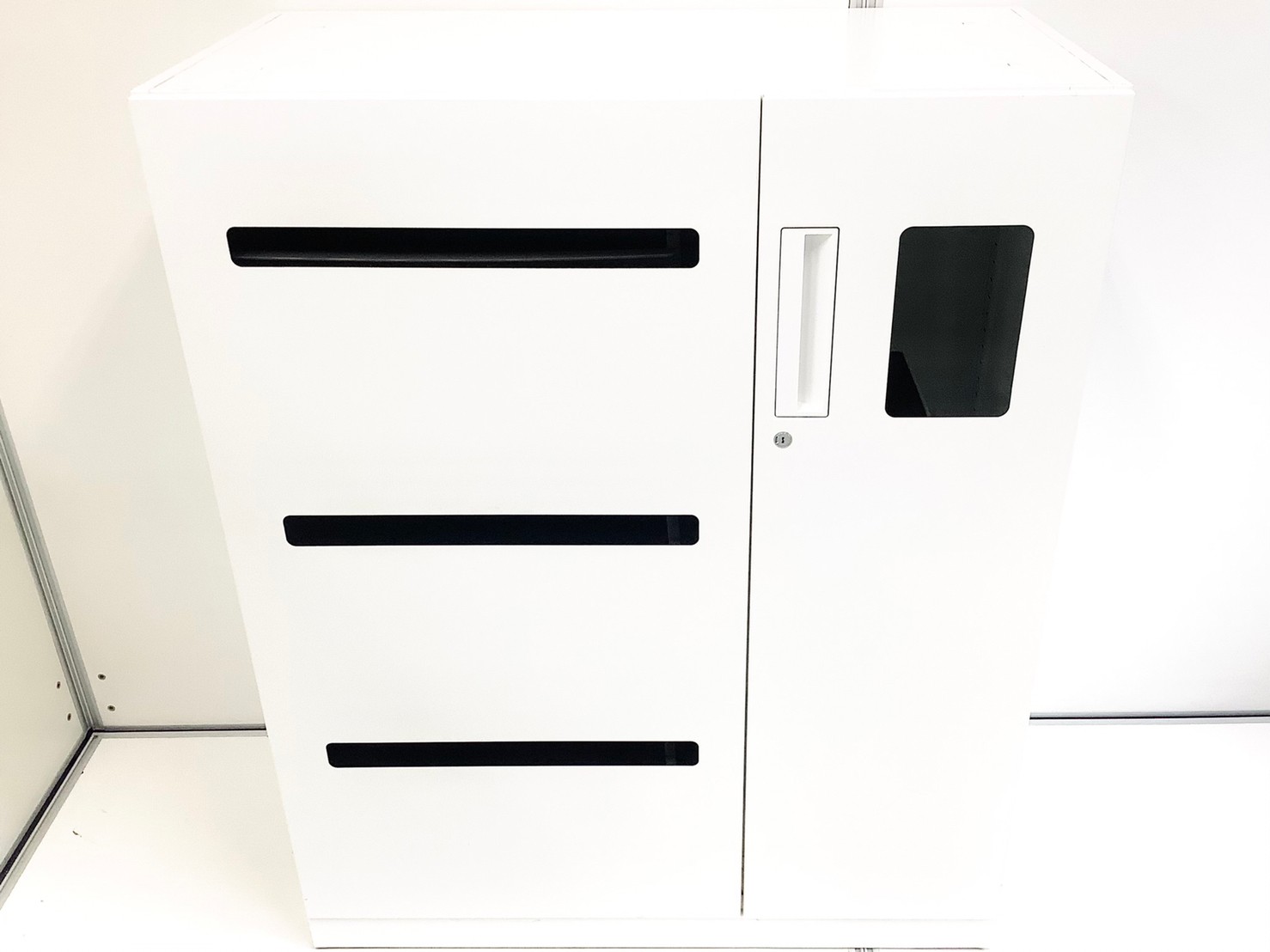 - 一部不具合ありそ引出の開閉不可、施錠不可、棚板無しといったの書庫の本来の効用を果たすための機能以外の一部が使用不可(例、扉、引出の開閉がしづらいなどがある。 )