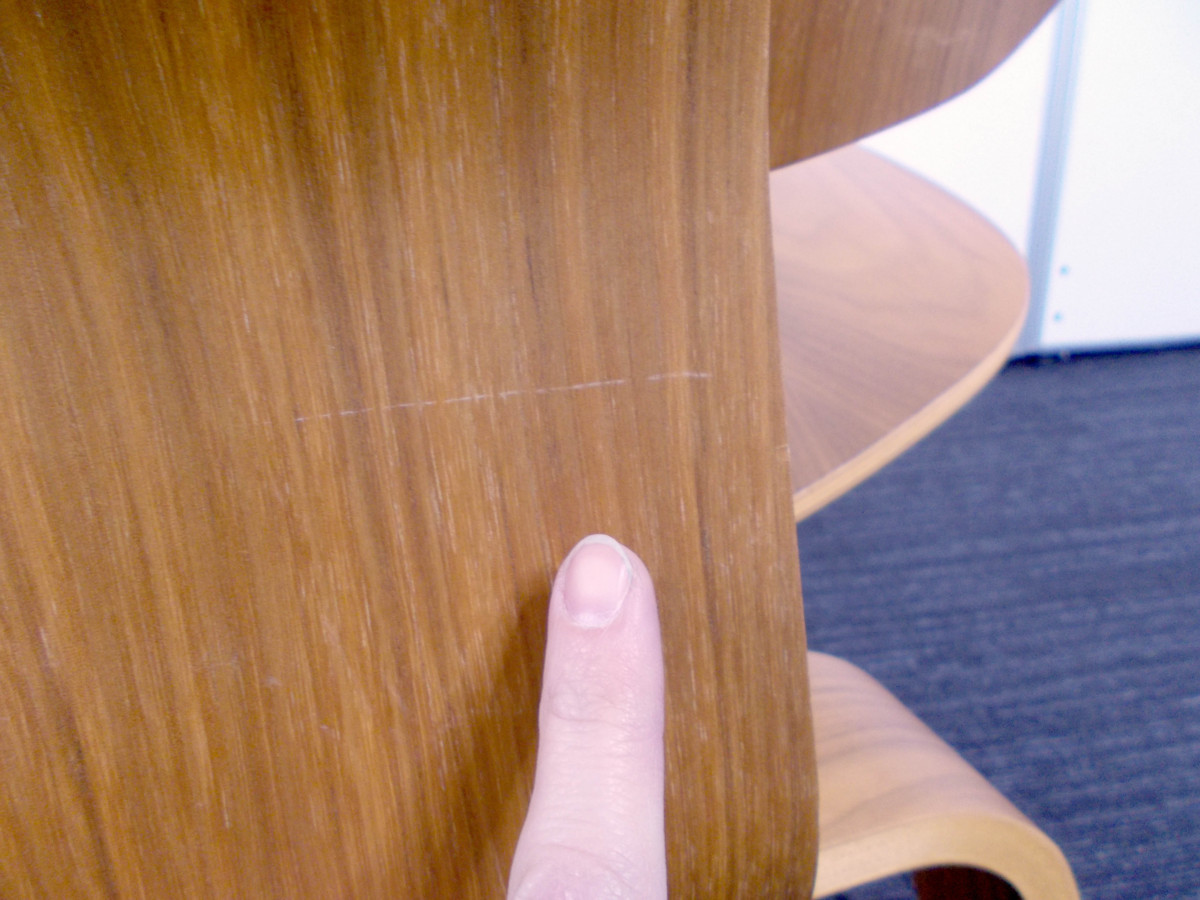 - 目立つ箇所あり傷・破れ・ほつれ・へたり・しわが多数または深い傷・破れ・ほつれ・へたり・しわが一部ある。※座面・背もたれ、シェル、脚部等にある。