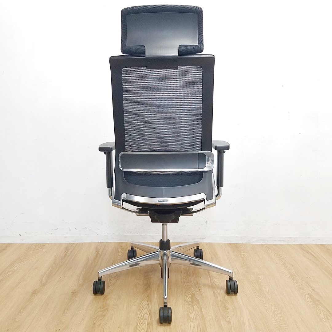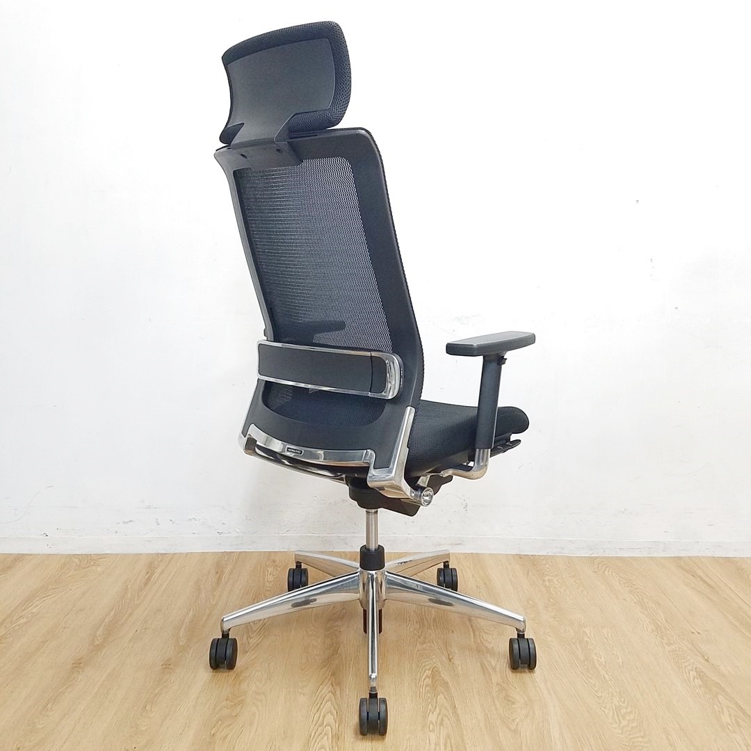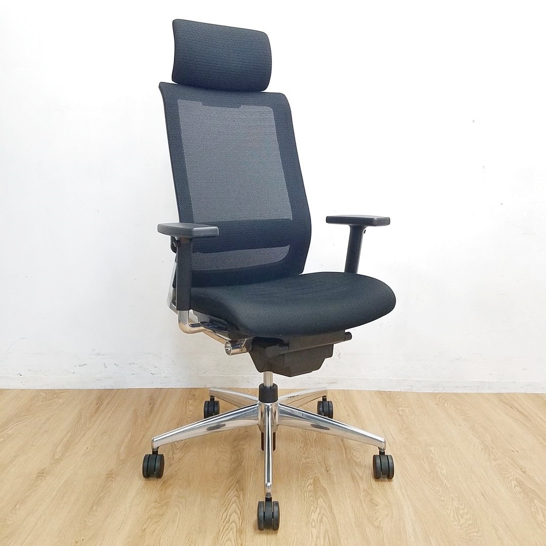 【スマートなデザインの上質チェア!】■コクヨ製 エアフォート 肘付ハイバックチェア ■ブラック ランバーサポート付き 可動肘