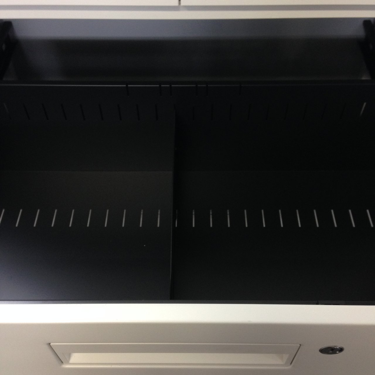 下置きは鍵のかかる3段ラテラルタイプなので、個人情報の保護にもこれで!