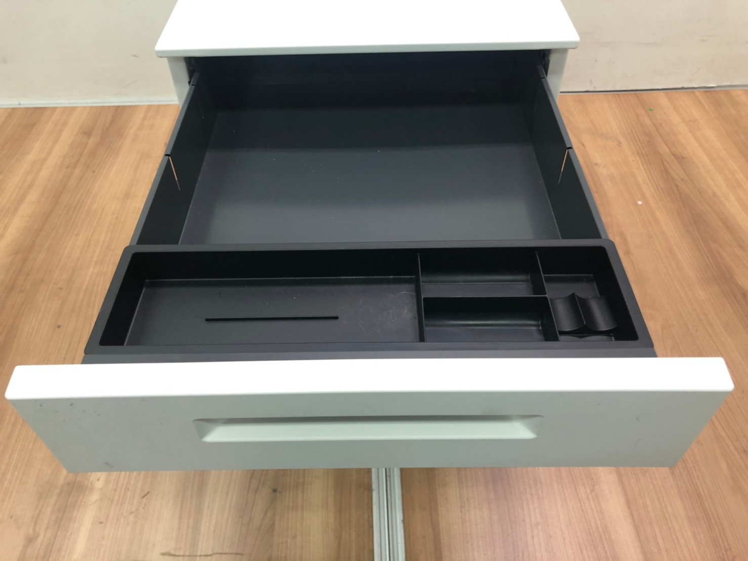 - 一部不具合ありその脇机・ワゴンの本来の効用を果たすための機能以外の一部が使用不可な状態。(例、引出が開閉しづらい、 キャスターロック機能使用不可、ラッチ不良 等がある。)