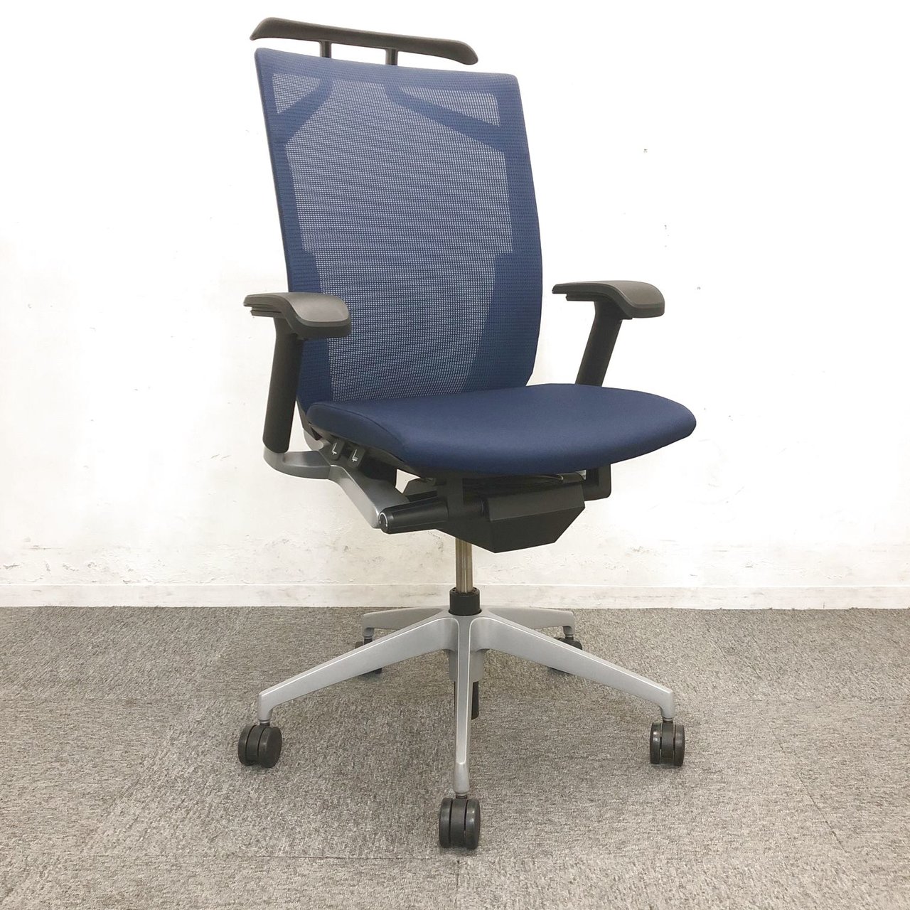 【シャープかつシンプルなデザイン!大きな背面が体にフィット!通気性がよく長時間でも快適な高級チェア!】■イトーキ(ITOKI)製 ヴェント(Vent)チェア 肘付き ハイバック 背面メッシュ ■可動肘 ■ランバー付き ■ネイビーブルー【2510】弊社使用欄【A01038503】