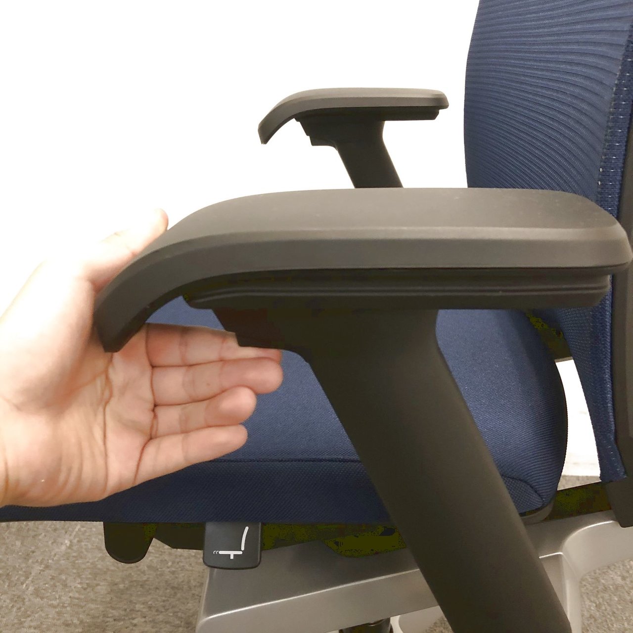 また、もうひとつ個人的なおすすめポイントはアームレスト(肘置き)です。高さ調節ができるのはもちろんですが、体格に合わせて前後、左右、斜めと細かく調節できるので、デスクワーク時の肩の疲労を軽減してくれます。さらに、肘を置く上部が直線的ではなく、手首側へなだらかに下がっているので、非常に使い心地が良いです。