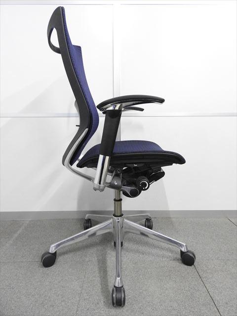 【上質で快適な座り心地!】■オカムラ製 バロンチェア アジャストアーム付 ダークブルー ランバーサポート付 ■ベストなポジションが得られる先進設計!- 川崎店