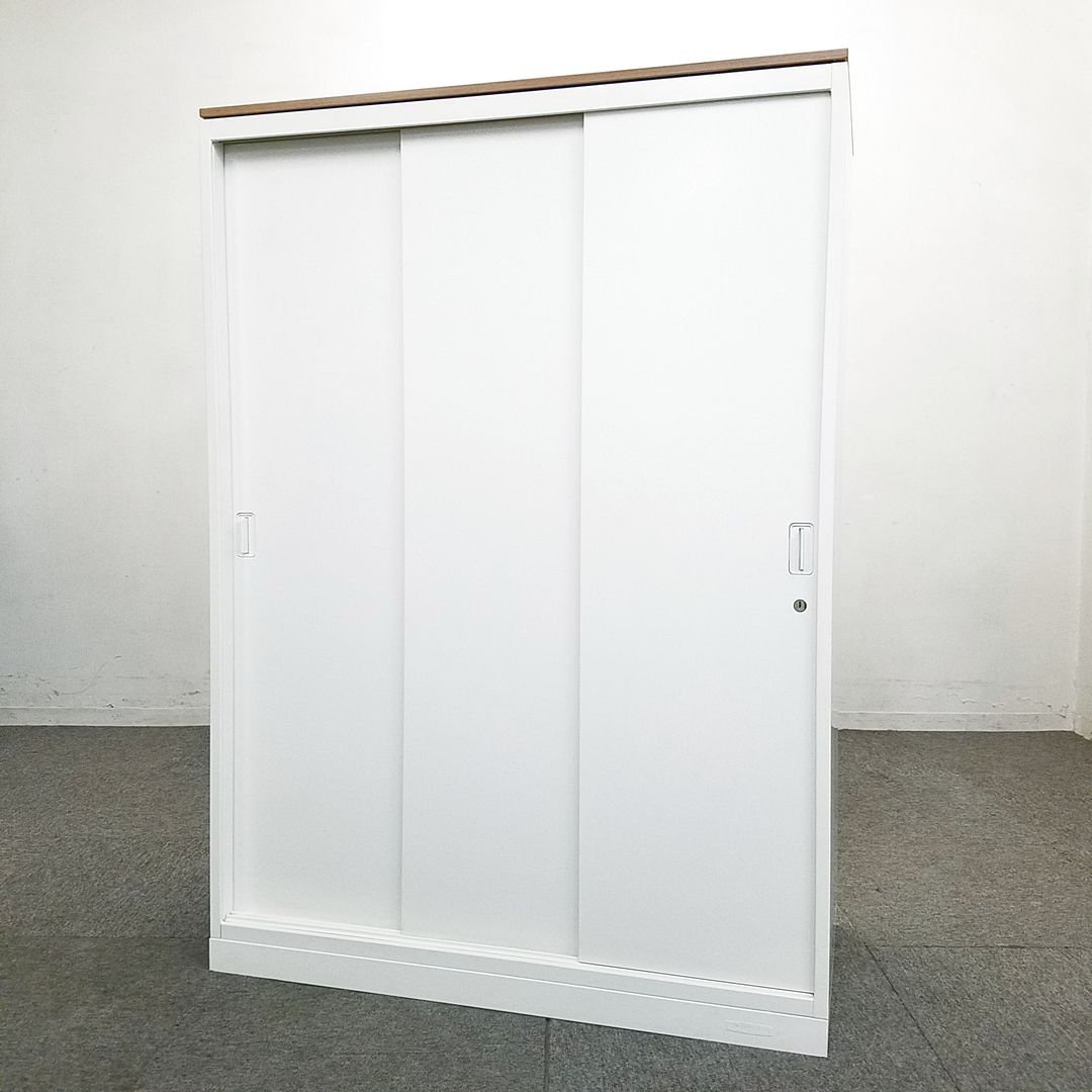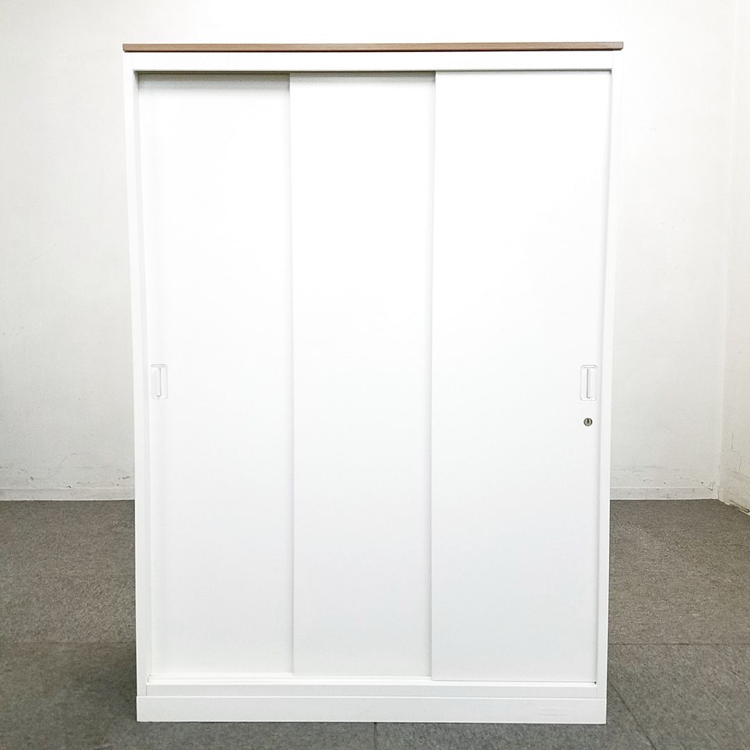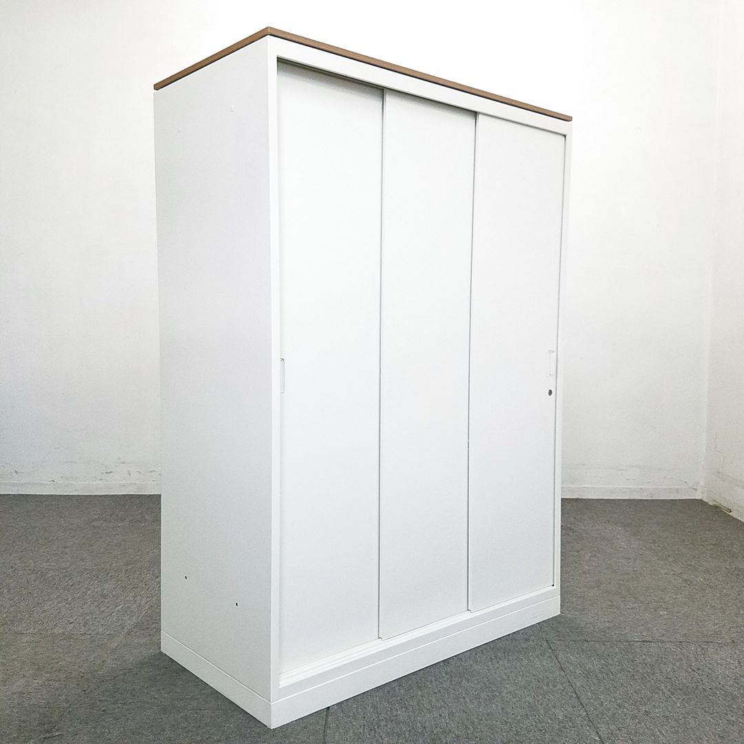 オカムラ製 人気レクトラインシリーズ ホワイト シリンダー W800xD450XH1050 3枚引戸 ※ベースなし 3枚引き違い書庫!!