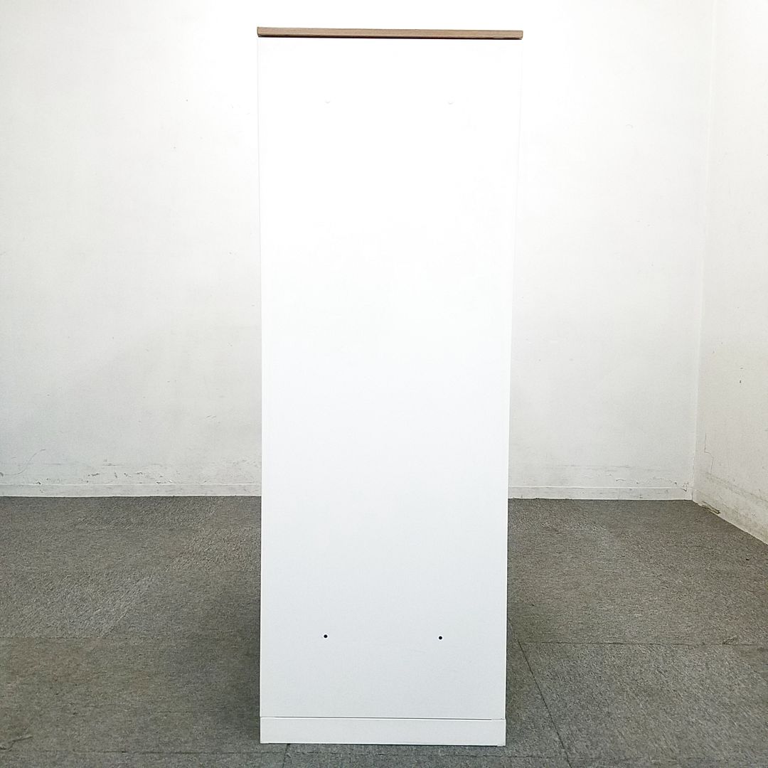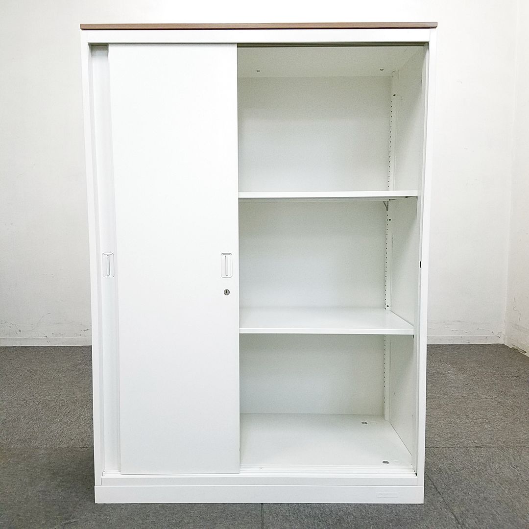 2枚引き戸書庫 オカムラ レクトライン 鍵付き シリンダー錠 ホワイト 天板無し スライド式の扉のため導線を邪魔しません