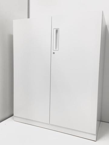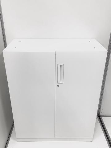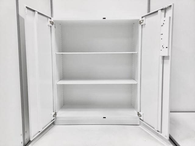 【収納物がひとめで分かる両開き戸タイプ!】■コクヨ(KOKUYO)製 エディア(EDIA)シリーズ 両開き書庫 ローキャビネット H1130㎜ ■天板・ベース付 ■ホワイト ■シリンダー錠