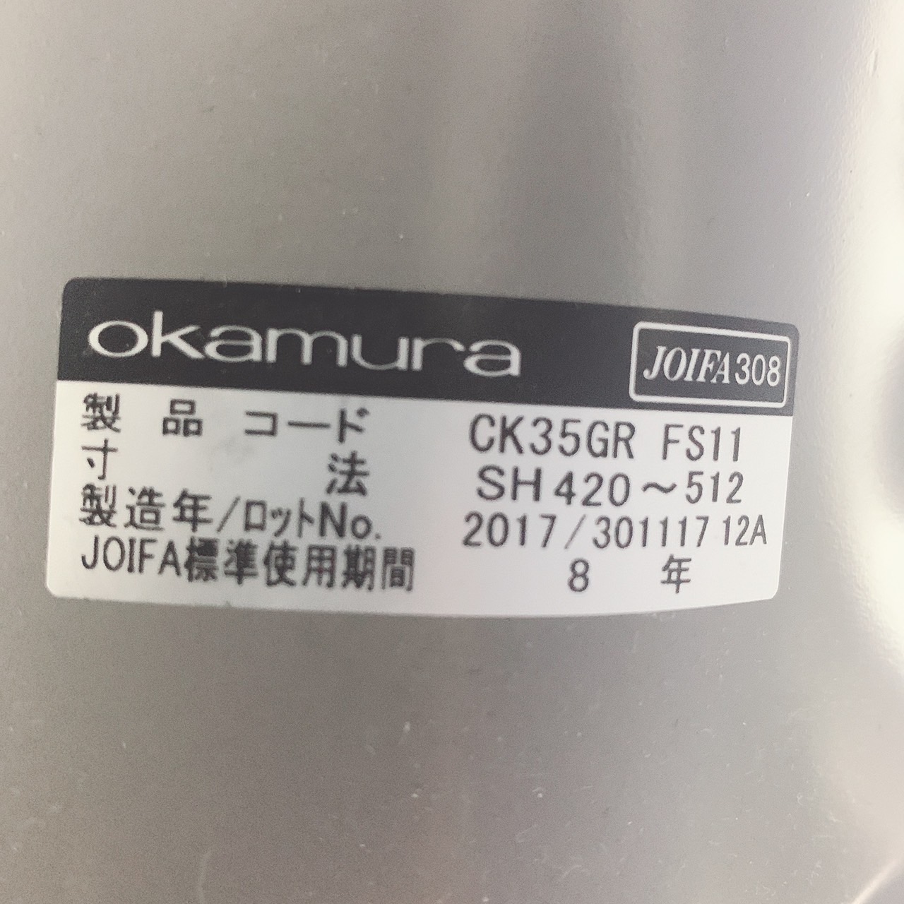 【中古】 カロッツァチェア CK35GR FS11 オカムラ/okamura 肘無ハイバックチェア 349825
