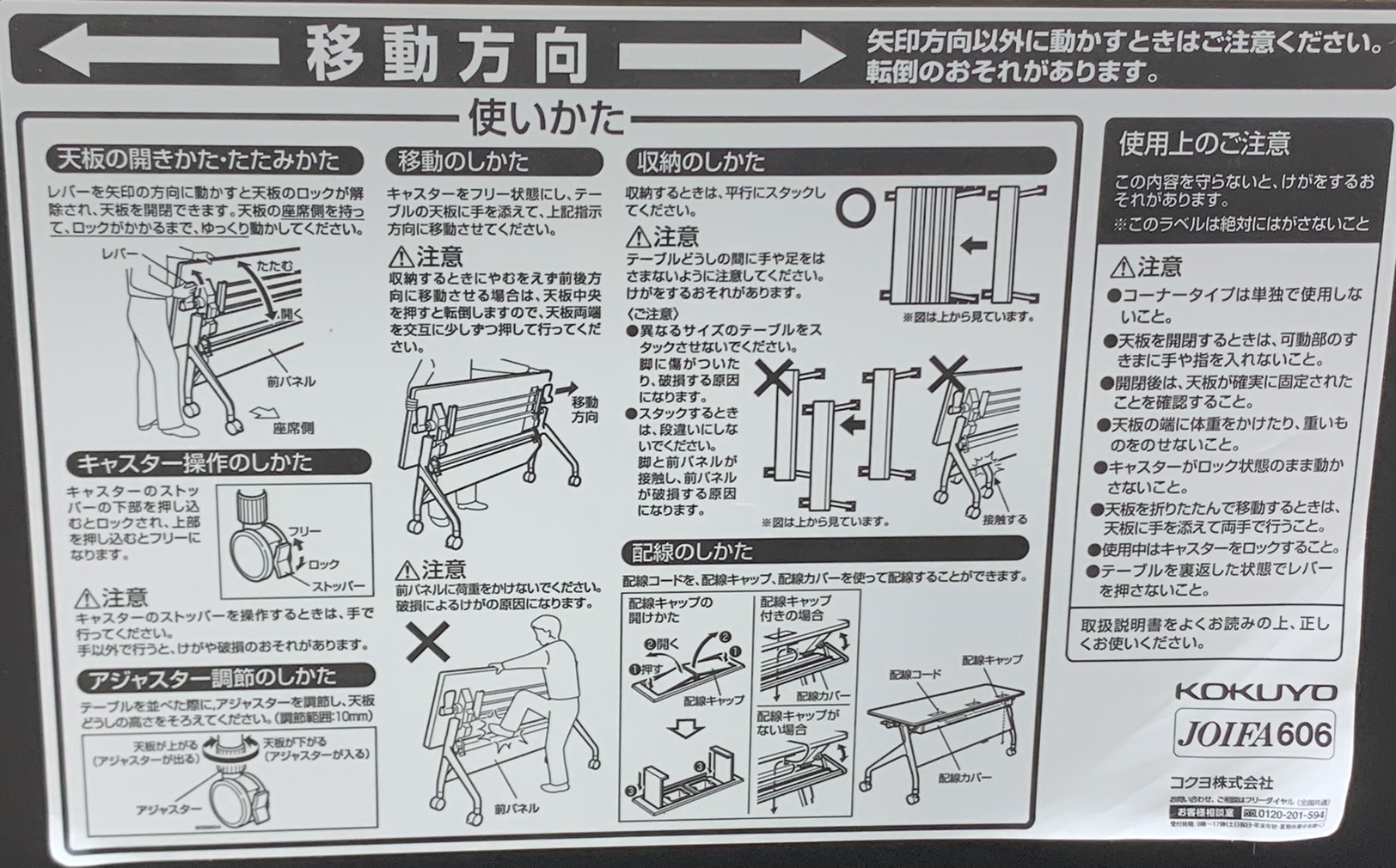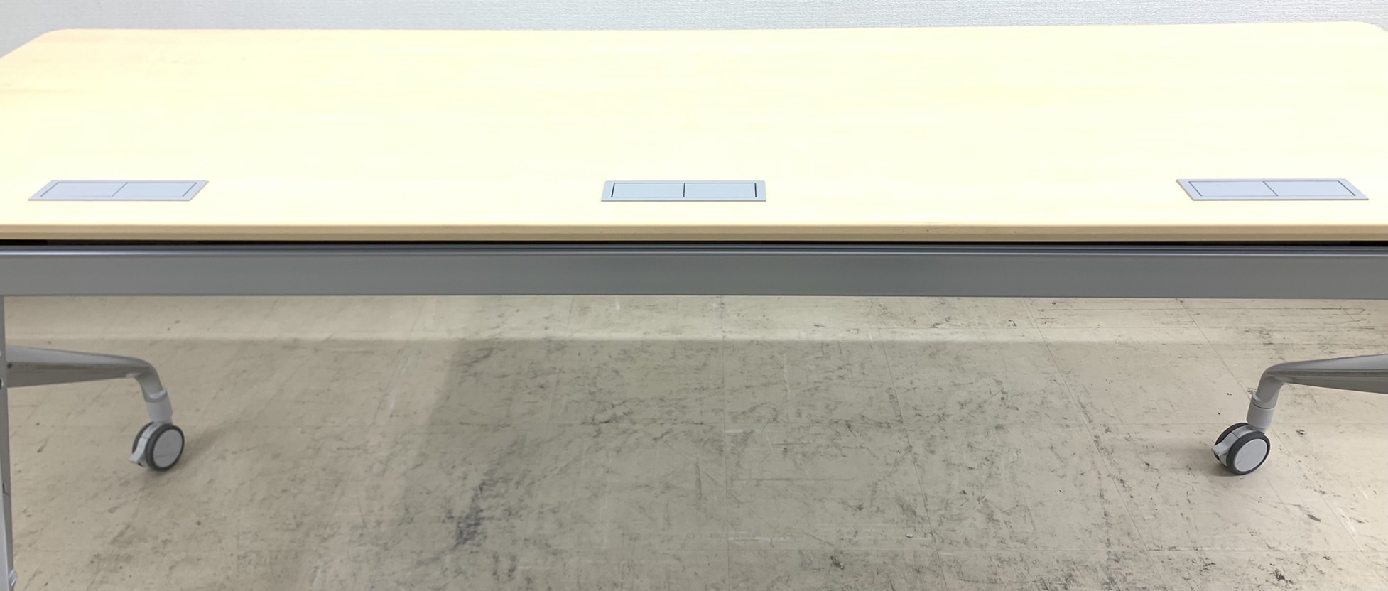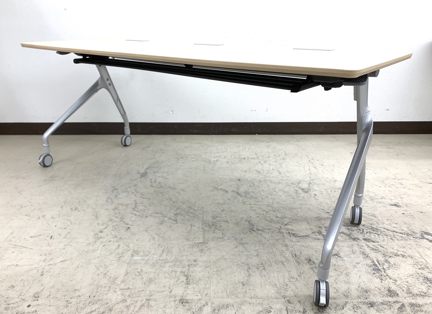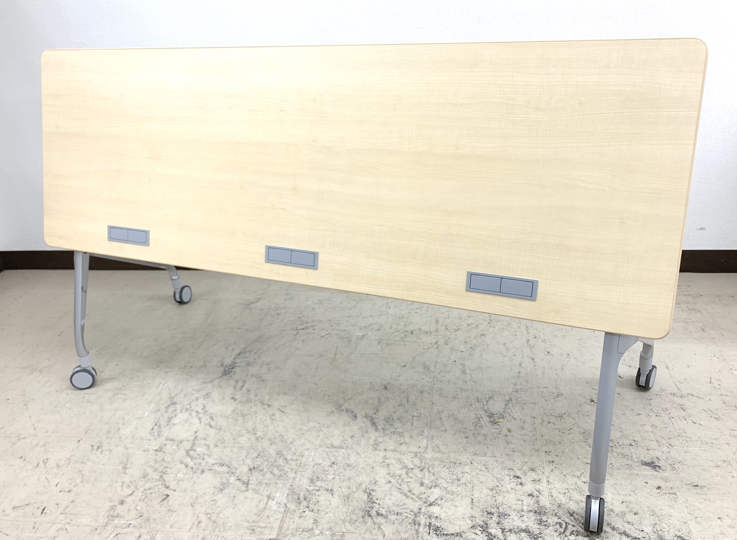 コクヨ製の収納性に優れた、平行スタッキングテーブルでございます。便利なキャスター付きで、天板折り畳みタイプです!
