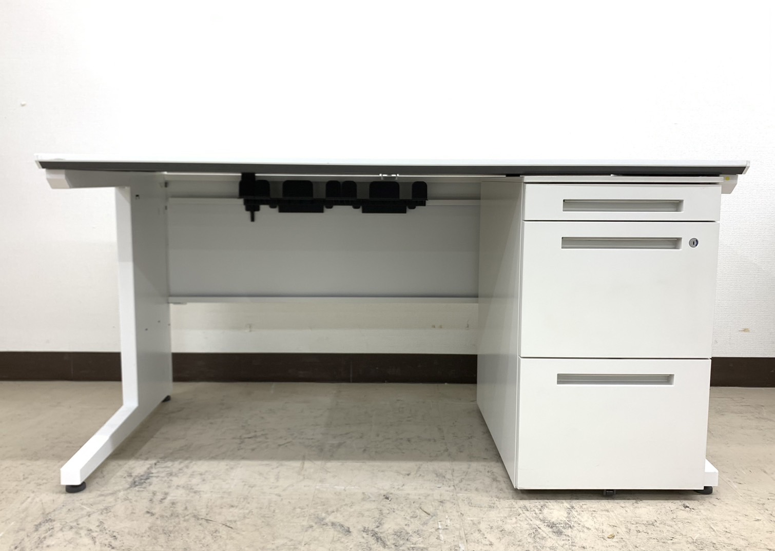 コクヨ iSシリーズ 片袖机 ゆったり使用できるW1400サイズ ホワイト天板 鍵付き シリンダー錠【愛知・名古屋・豊田・静岡・浜松】