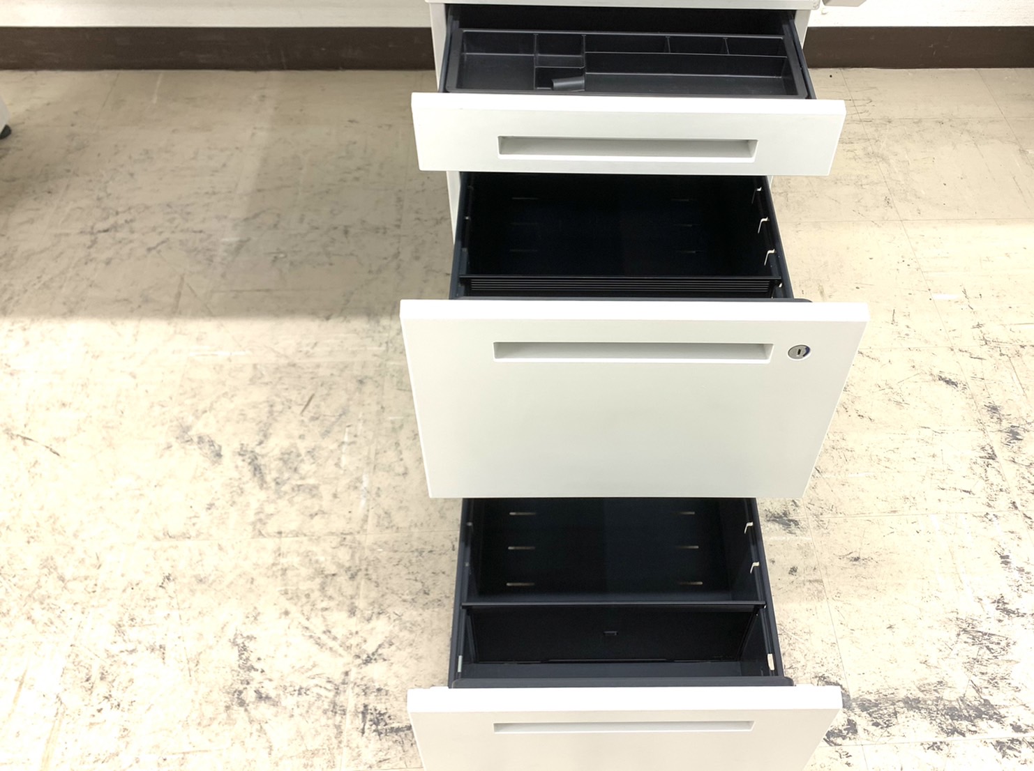 【4セット入荷】広~い横幅1400㎜平机with3段ワゴンセット※オールホワイト仕様コクヨ&イトーキ製【RP】- 埼玉本店