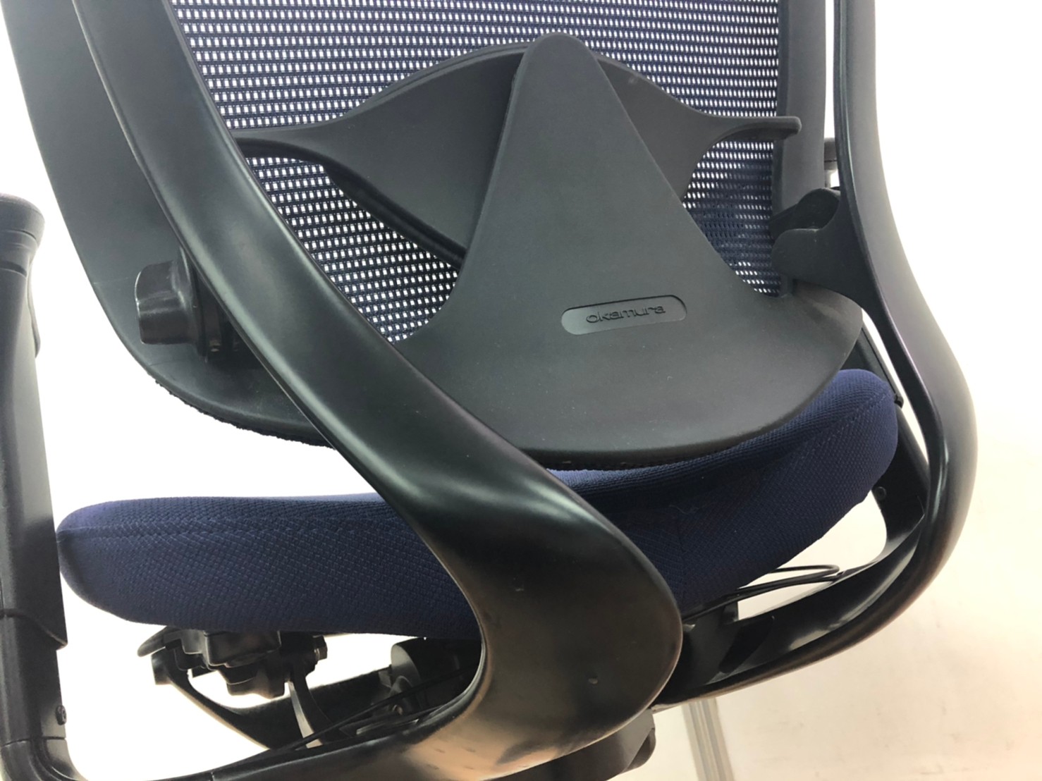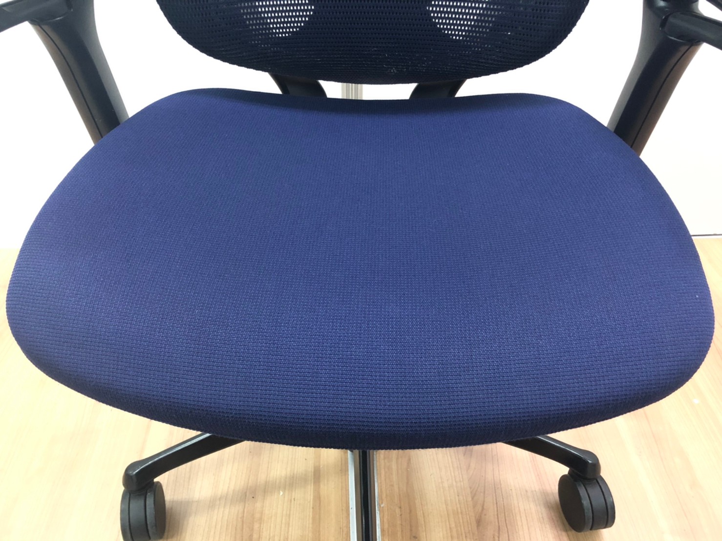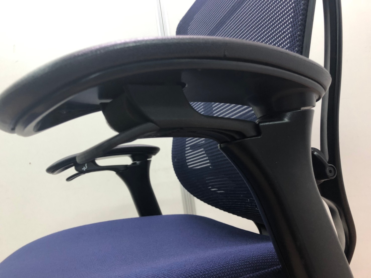 【オカムラ製の最高級チェアが残り1脚限りです!!】オフィスバスターズ 東大阪店 オカムラ製 コンテッサ シリーズ ダークブルー アジャストアーム※可動肘 背/座面メッシュ ランバー 世界で認められた革新的タスクチェア!人間工学に基づいた快適な座り心地を実現! 肘付きハイバックチェア!! 中古 外部倉庫品