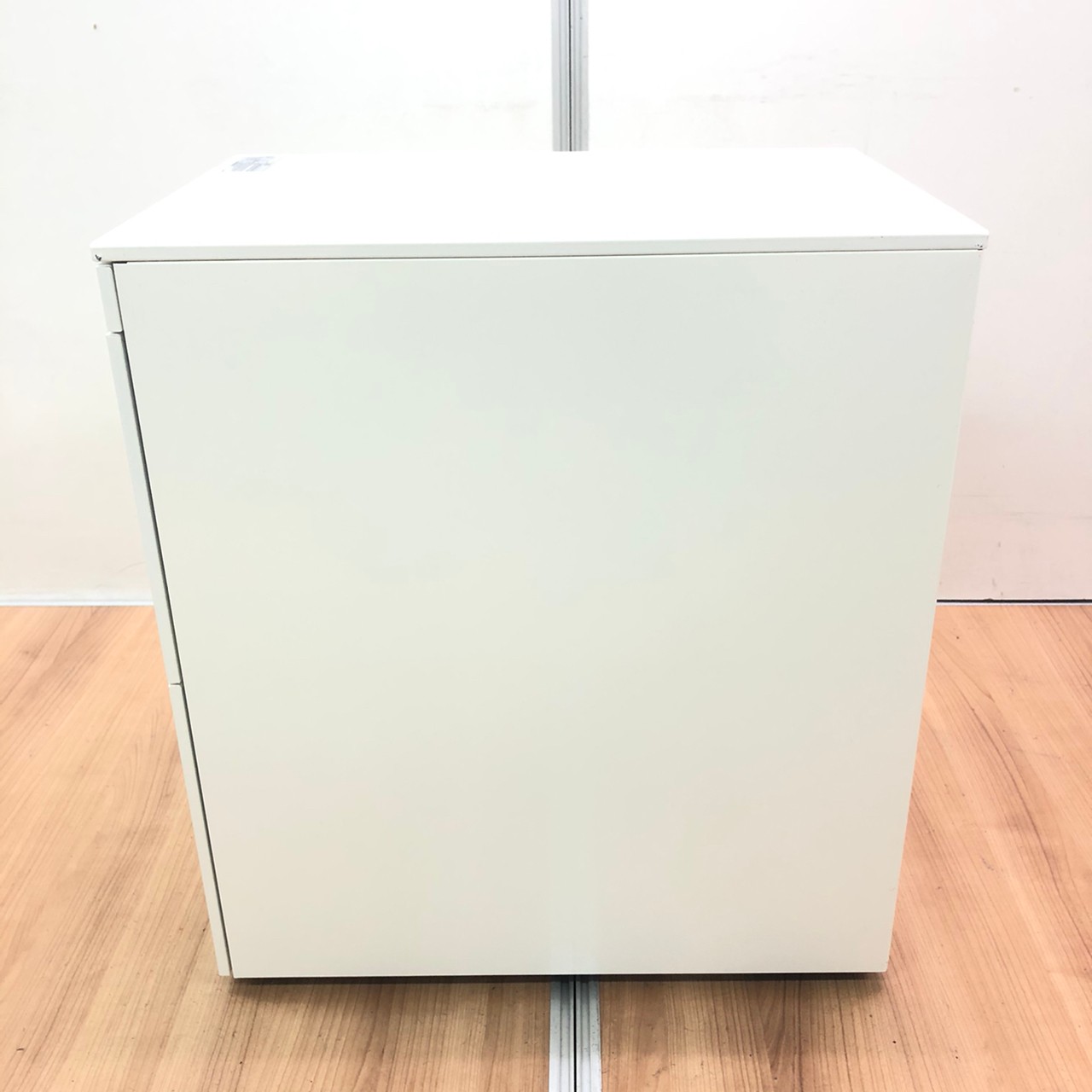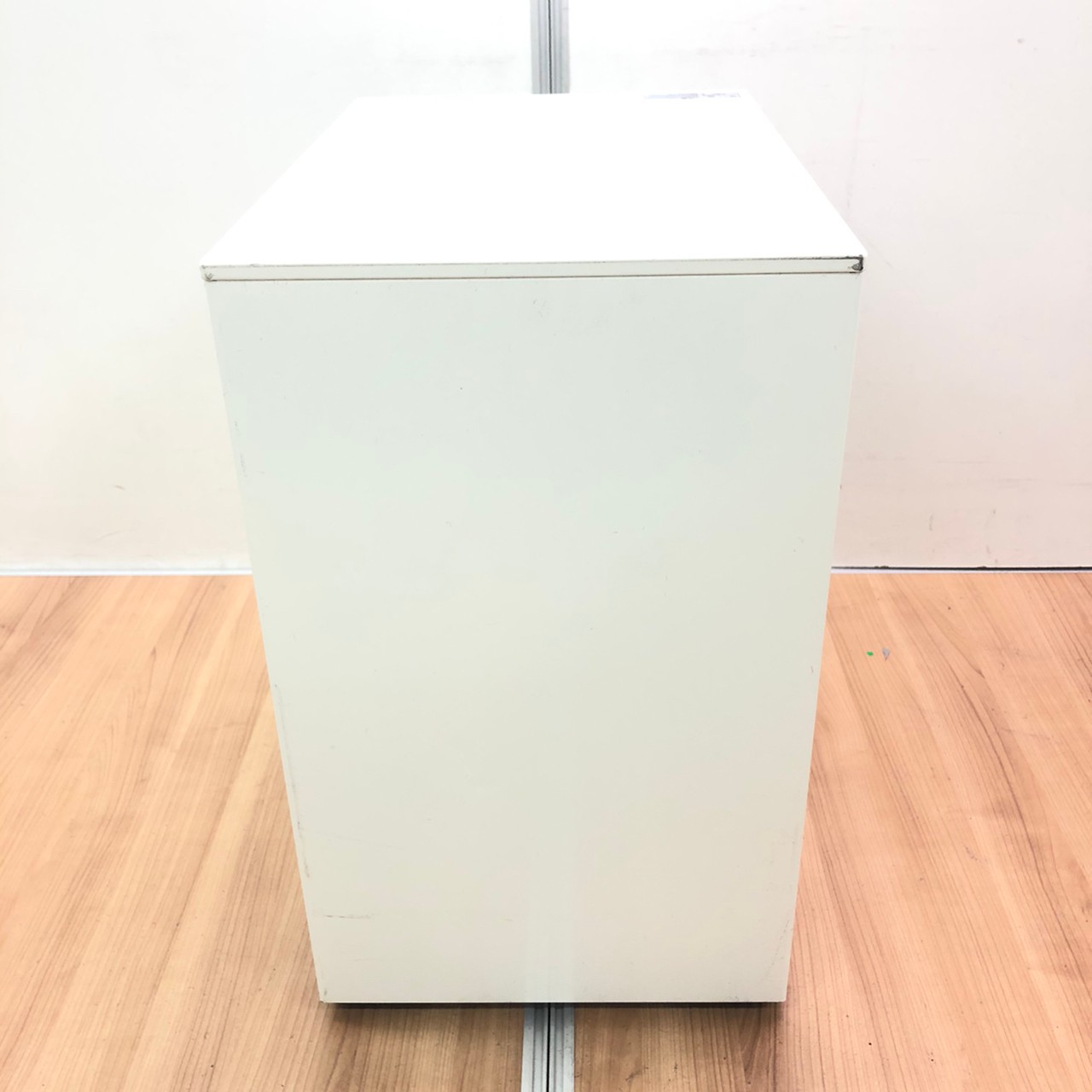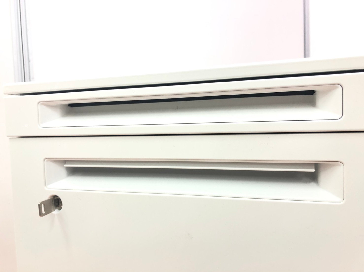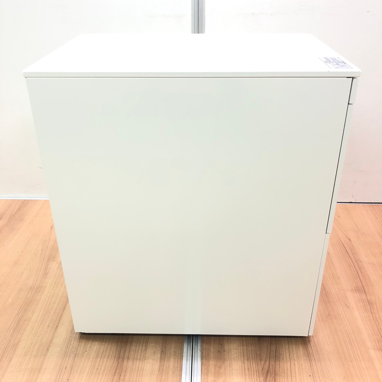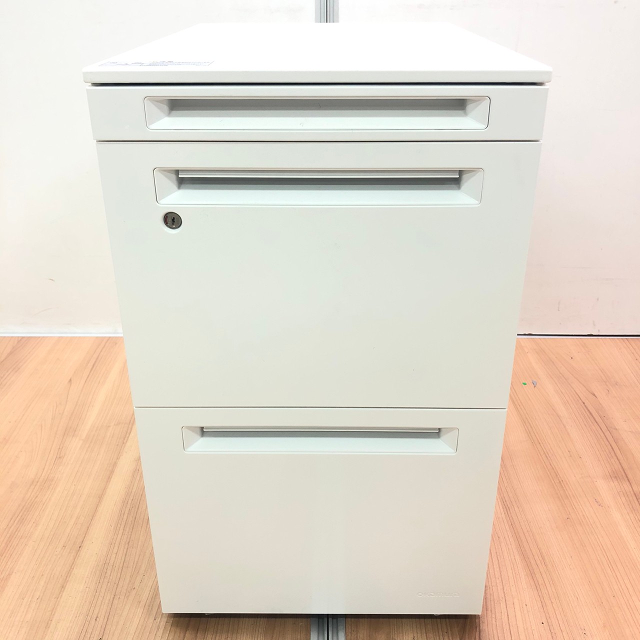【正面に取っ手が無いフラットなデザイン!キャスター付でレイアウト変更がスムーズ!】■オカムラ(okamura)製 プロユニットシリーズ 3段ワゴン フリアド用ワゴン H650㎜ ■ホワイト ■シリンダー錠 ※キズ・塗装剝がれ有