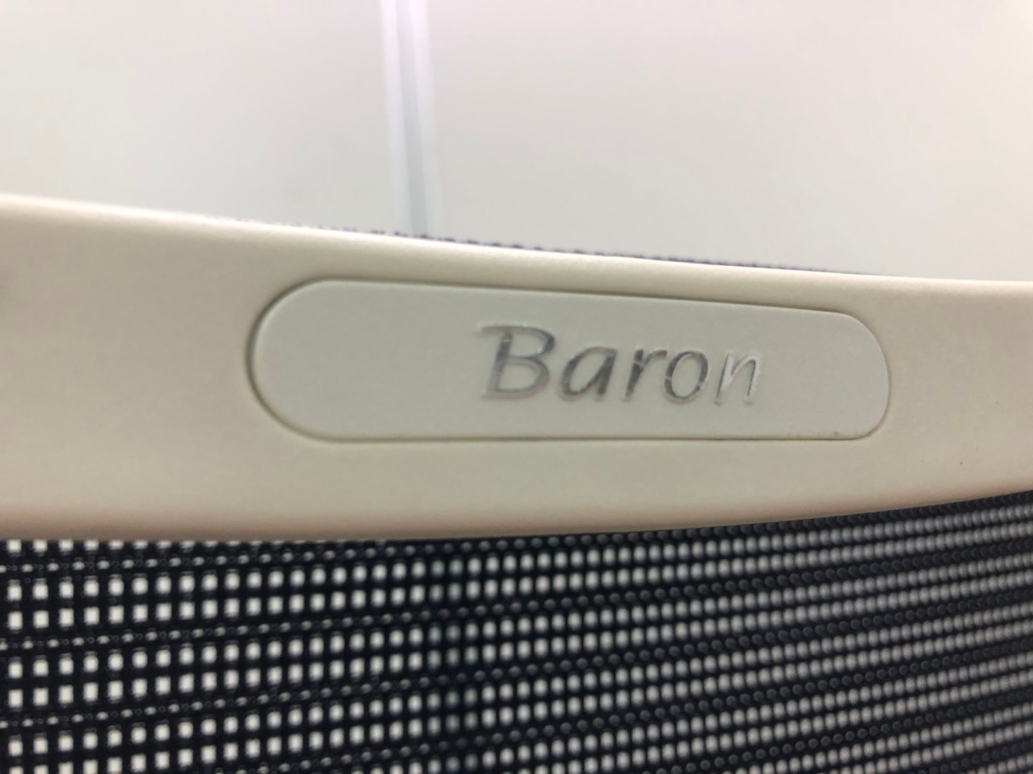 発売当時、既に人気を博していたオカムラの高級チェア、コンテッサから手元で座高調整ができるスマートオペレーション機能を取り除くなどしてリーズナブルにしたのがバロンです。その際に少しだけコンパクト化されました。そのことが、日本人の体格、日本のオフィス、家庭環境に適し、国内で多くのシェアを獲得する要因の一つになったのではないかと思います。
