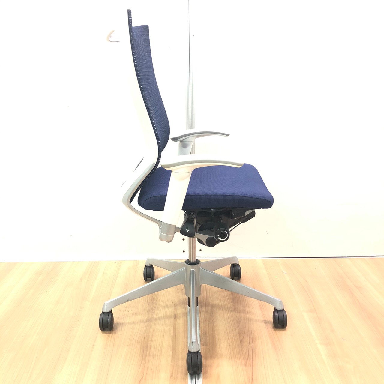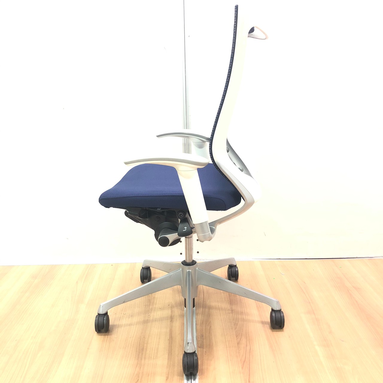 【オフィスの執務室、会議室におすすめ!】■オカムラ(okamura)製 バロン(Baron)チェア 肘付き ハイバック 背面メッシュ ■可動肘 ■ダークブルー × ホワイトシェル【硬めの座面が大人気!国産メッシュチェアの代表格!】【状態良好品!】