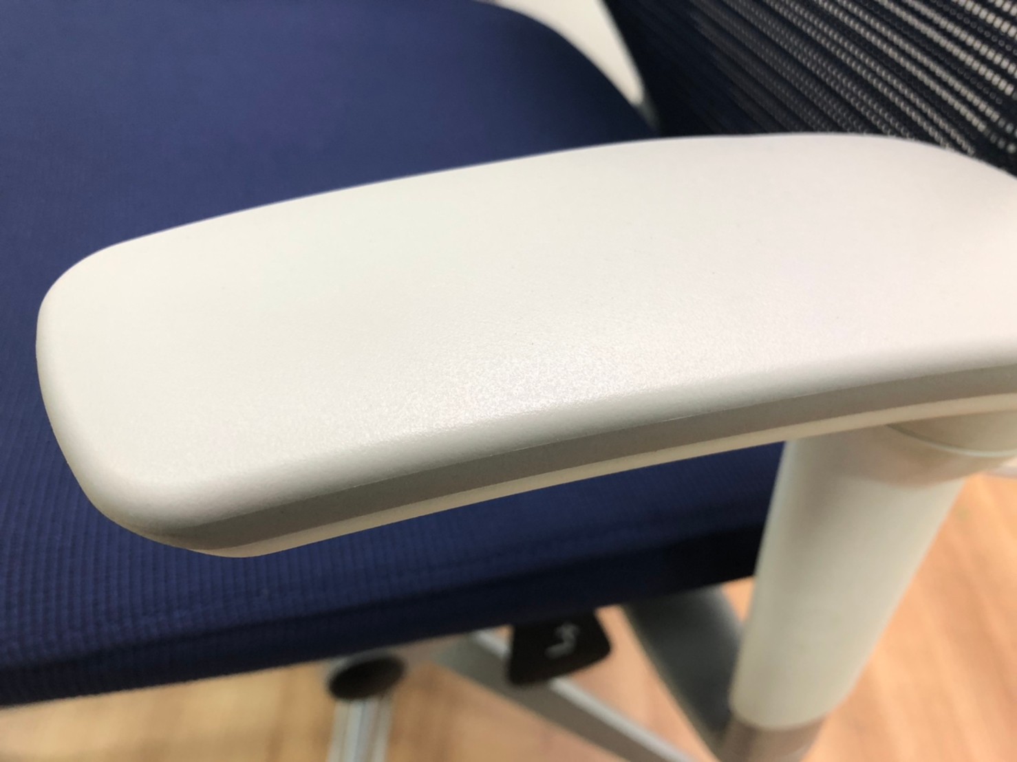 【新品ヘッドレスト付き】オカムラ/バロン/ブルー×ホワイト/可動肘/座面クッション【AD】