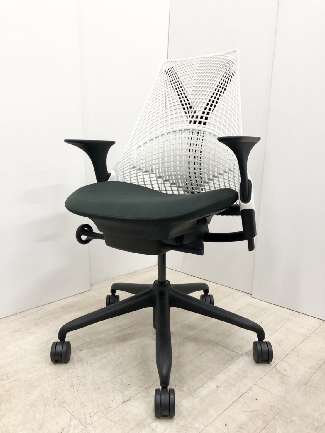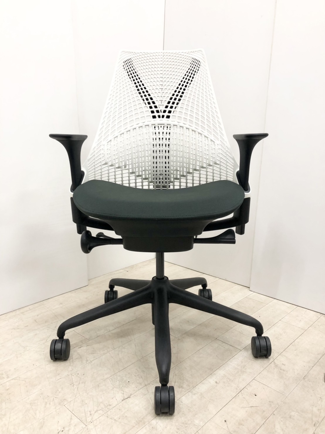 【可動肘】ハーマンミラー/セイル/背もたれホワイト/座面ダークグリーン- つくば店
