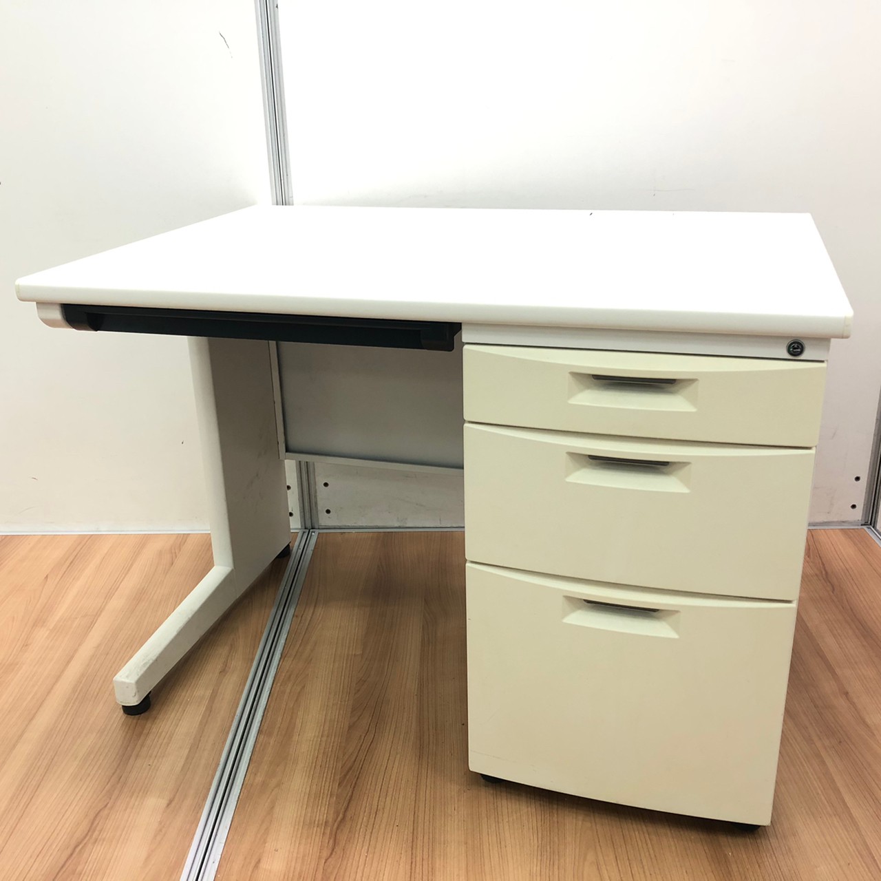 【横幅100㎝:1000㎜】ホワイト色の片袖机 イトーキ製CZ ※商品日焼けありサーキュラーバリューCO2削減量の算出について