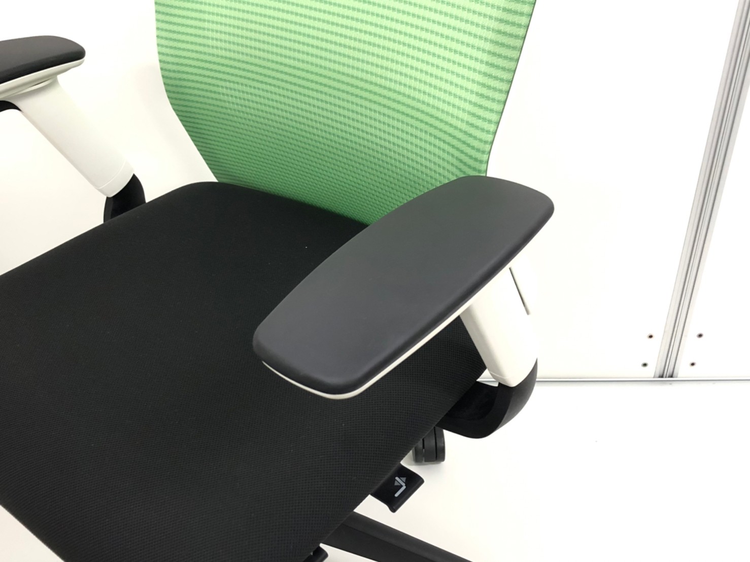 また、個人的にオススメなのは『フルアジャスタブル肘』というアーム部分が斜め前に伸びていくタイプの肘置きを搭載したモデルです。高さを上げれば上げるほどパッドが前方に迫り出していくので、デスクワークの際にちょうど肘を置きたい場所に肘置きがきます。これがとても快適なので、ぜひ一度お試しいただきたいです!*エルフィチェアの肘パーツはフルアジャスタブル肘の他に、固定肘、アジャスタブル肘などがあります。